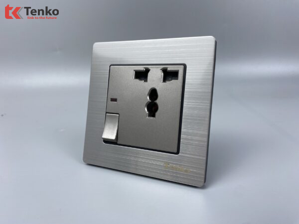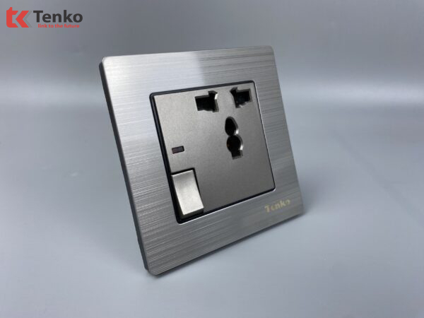 Ổ cắm 3 chấu kèm công tắc Mặt Nhôm Phay Tenko TK-F71B-27 Xám bóng