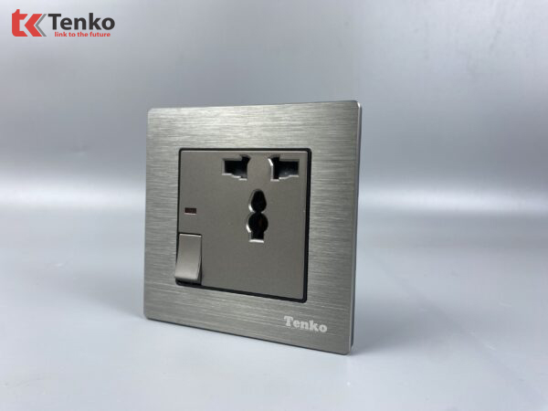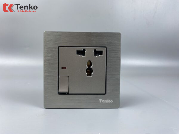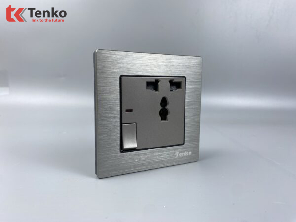 Ổ cắm 3 chấu kèm công tắc Mặt Nhôm Phay Tenko TK-F71B-27 Xám xước