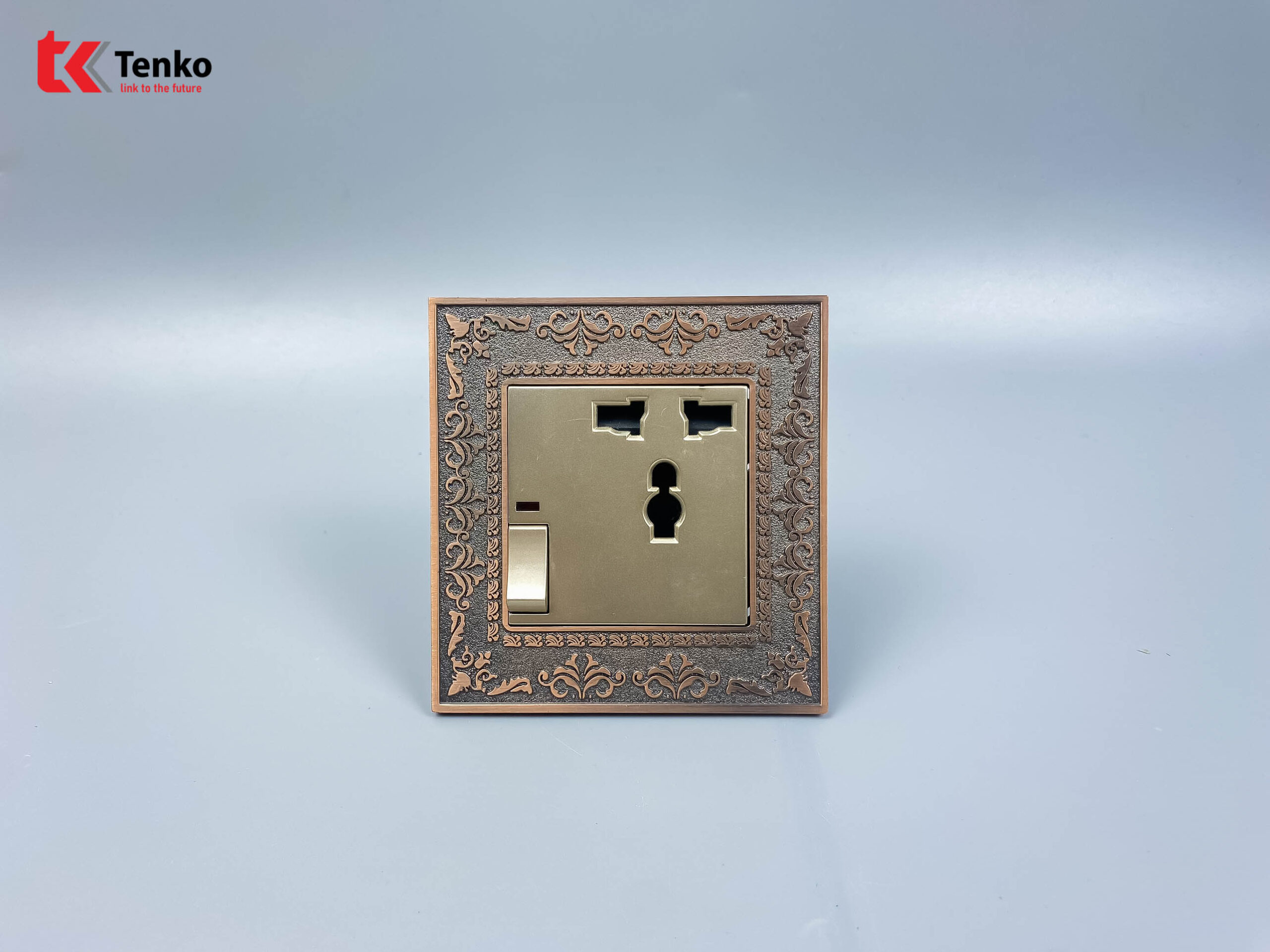 Ổ cắm 3chấu kèm công tắc cao cấp là sản phẩm chủ đạo của Tenko. Với thiết kế sang trọng cùng mặt Vuông tân cổ điển làm tôn lên vẻ đẹp cho không gian ngôi nhà.