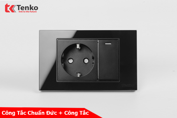 Ổ Cắm Chìm Chuẩn Đức Có Công Tắc Âm Tường Mặt Kính Cường Lực Tenko TK-C18-060