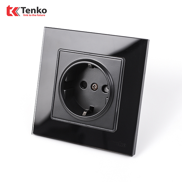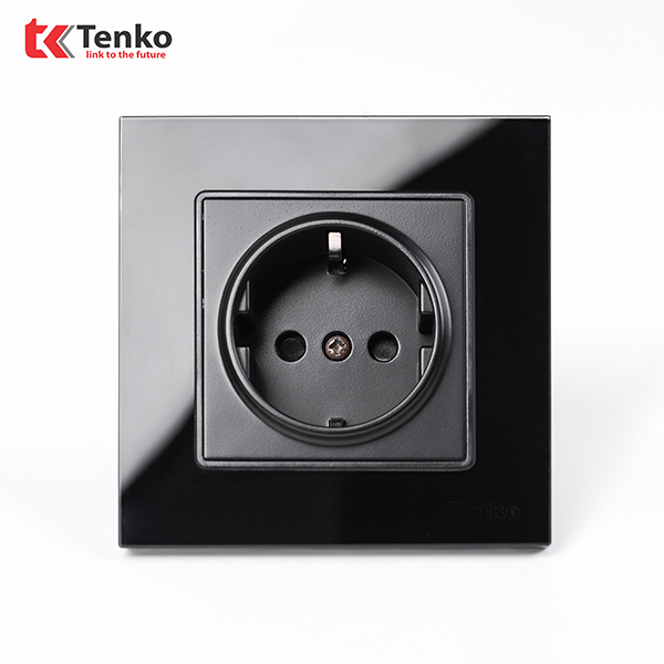 Ổ Cắm Chìm Chuẩn Đức Mặt Kính Cường Lực Tenko TK-F71D-20 Đen