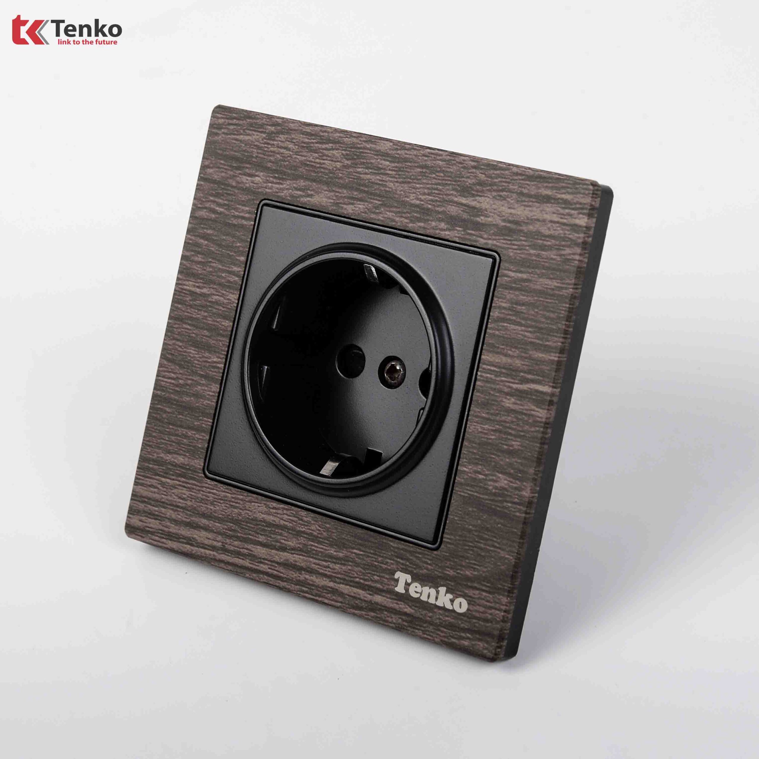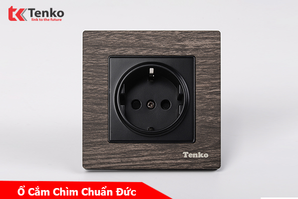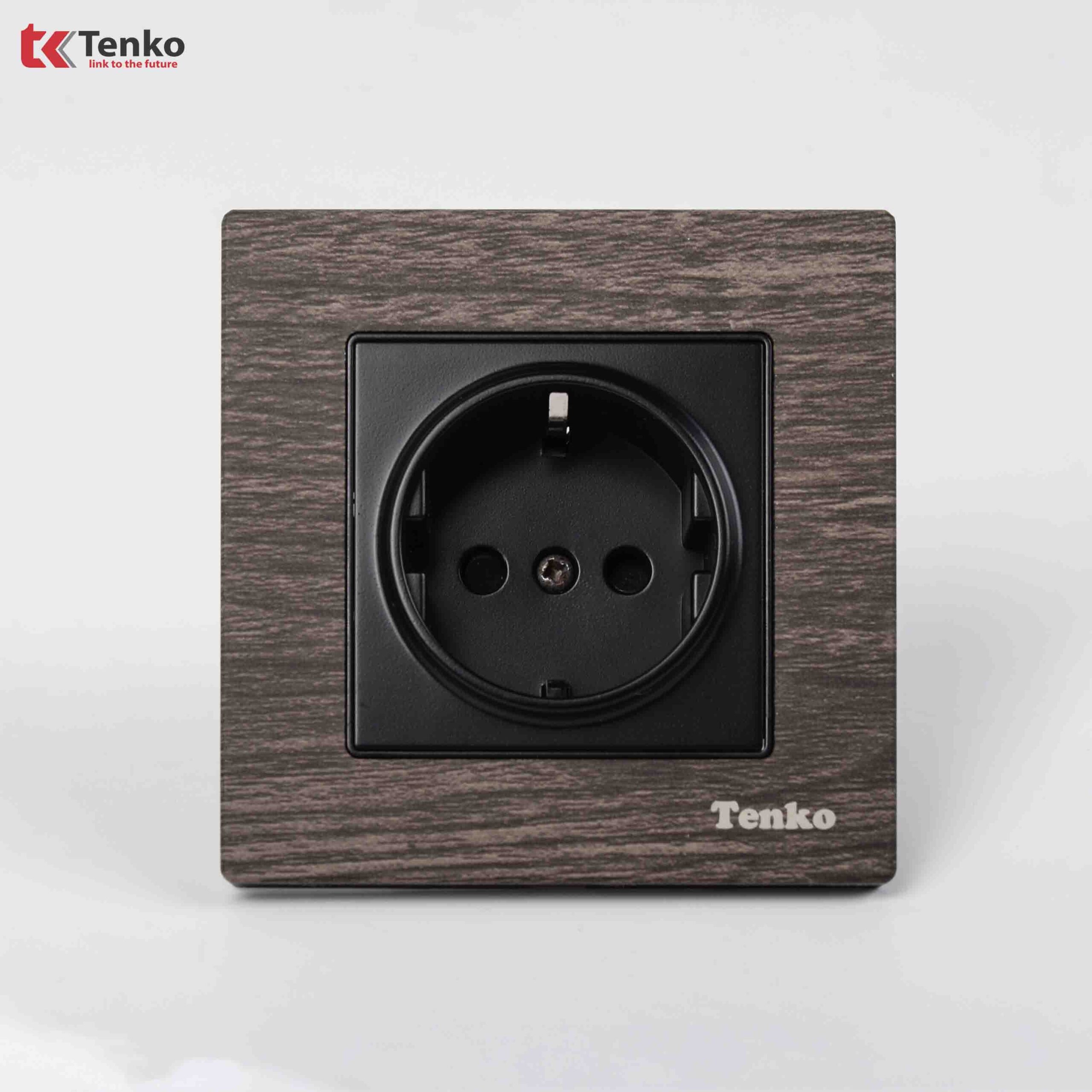 Ổ Cắm Chìm Chuẩn Đức Mặt Vân Gỗ Tenko TK-F71A-20