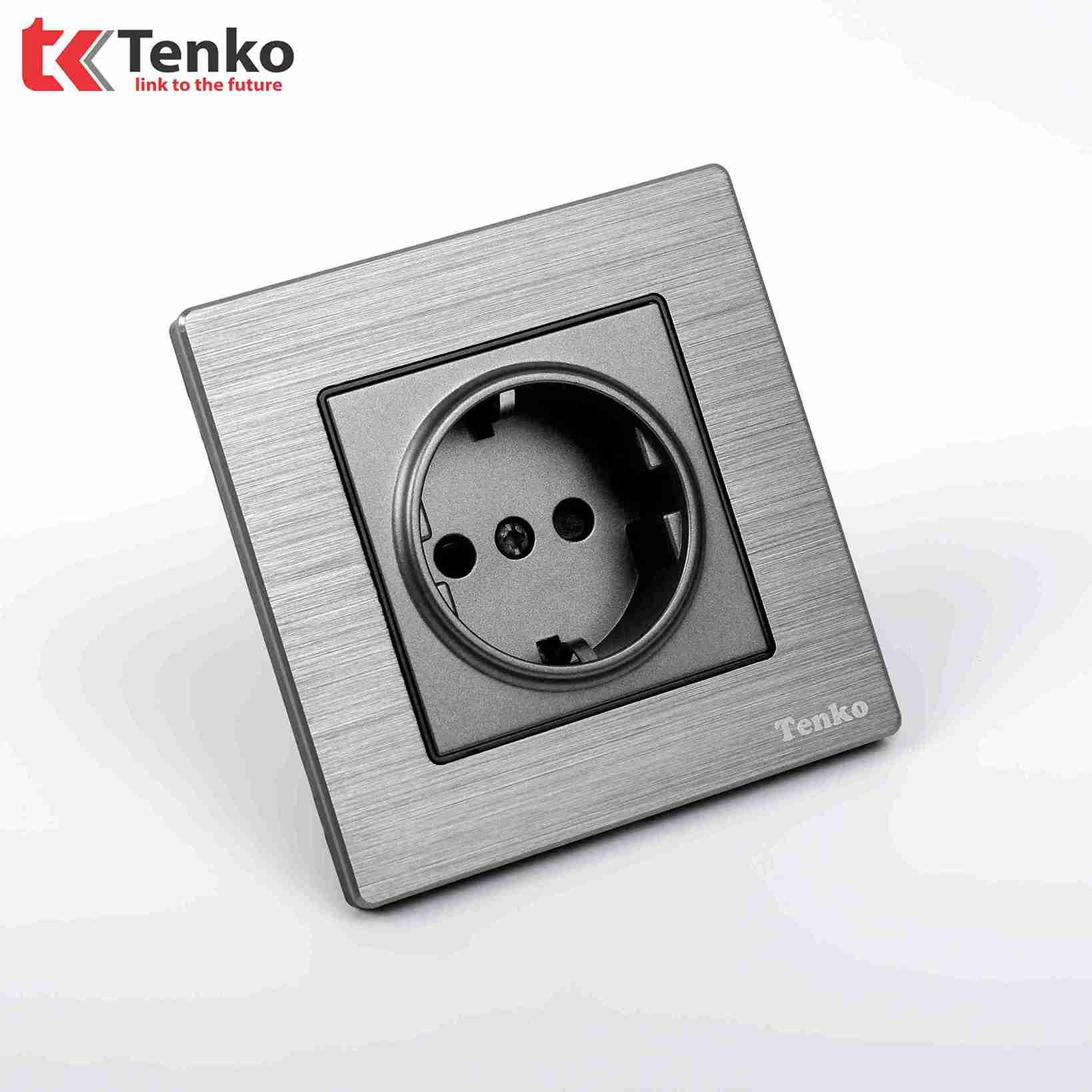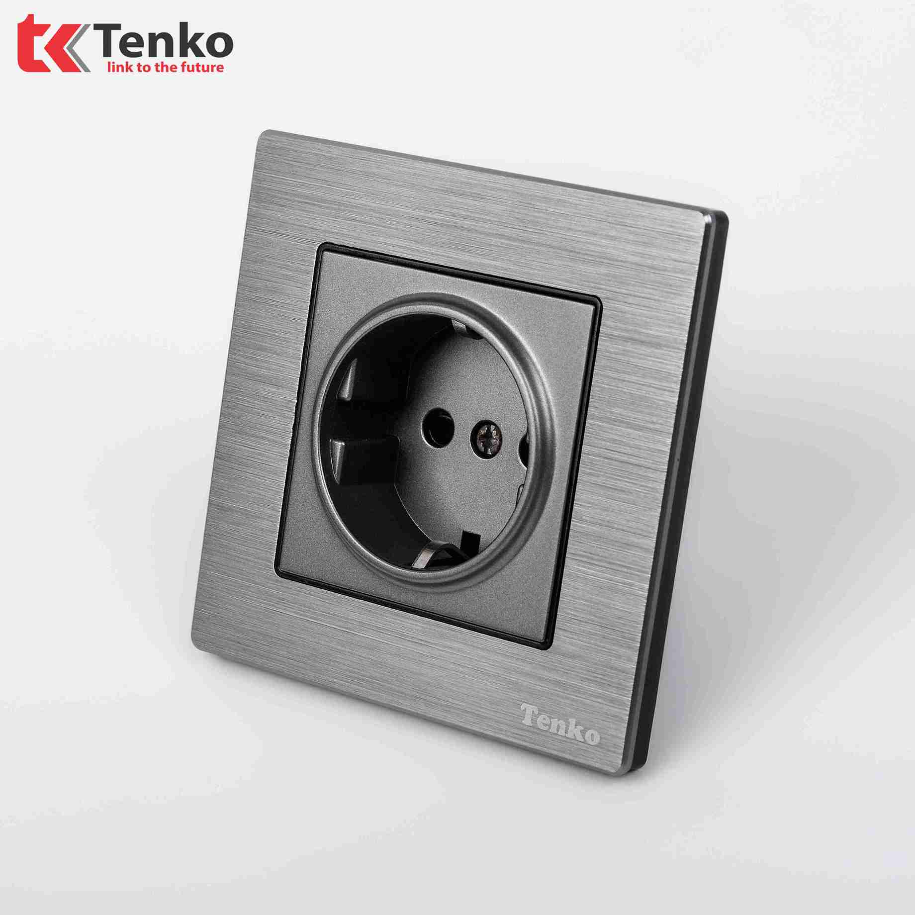 Ổ Cắm Chuẩn Đức Schuko Mặt Hợp Kim Tenko TK-F71B-20 Xám Xước