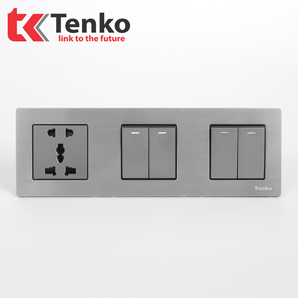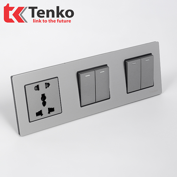 Ổ Cắm, Công Tắc Âm Tường 3 Module TK-KL3-05 có thiết kế bằng kim loại màu ghi bạc mang lại vẻ đẹp, sang trọng phù hợp với nội thất cao cấp trong các biệt thự, khách sạn.