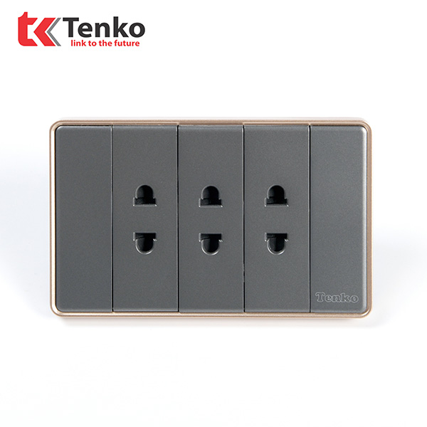 Ổ Cắm Điện 2 Chấu Âm Tường Mặt Tràn Viền Tenko TK-C1-020 Xám Viền Vàng là dòng sản phẩm cao cấp, được làm từ chất liệu nhựa an toàn, thiết kế tràn viền sang trọng, hiện đại. Gia tăng tính thẩm mỹ cho ngôi nhà của bạn.