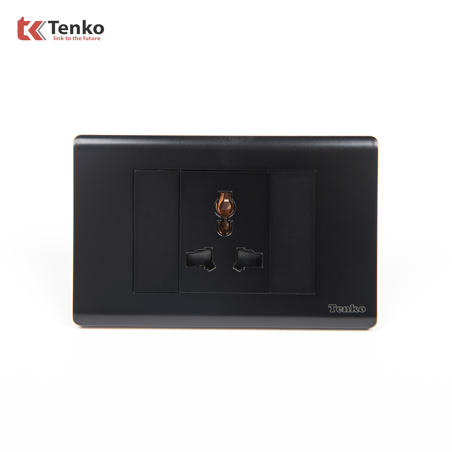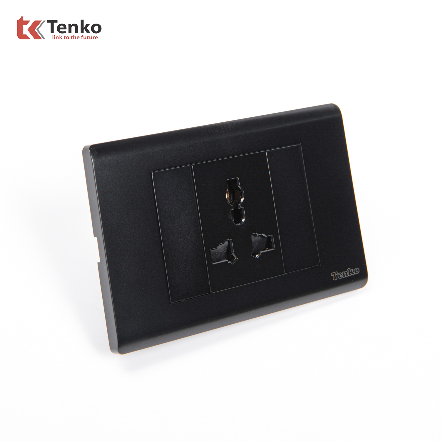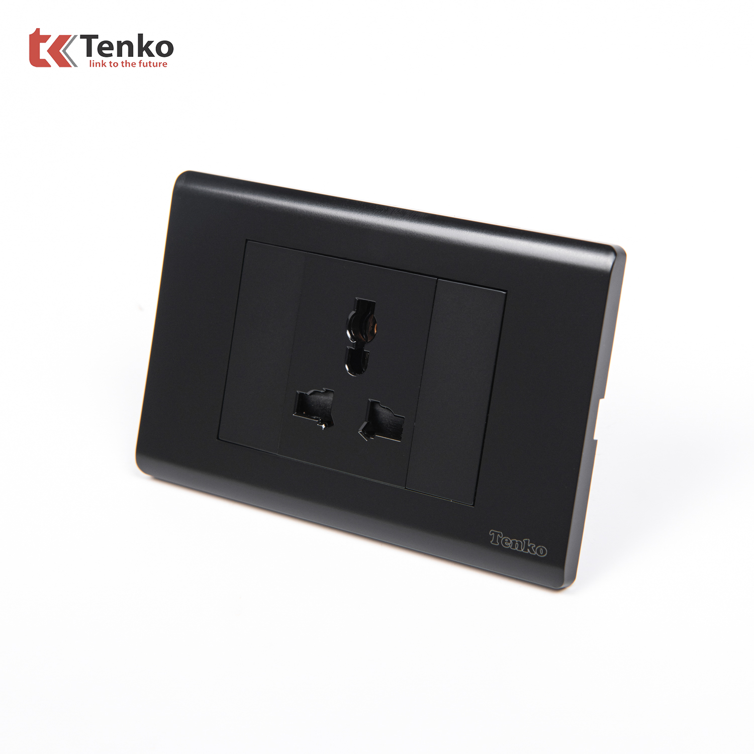 Ổ Cắm Điện 3 Chấu Chống Cháy Cao Cấp TENKO TK-C25-051 – Mặt Nhựa PC Đen
