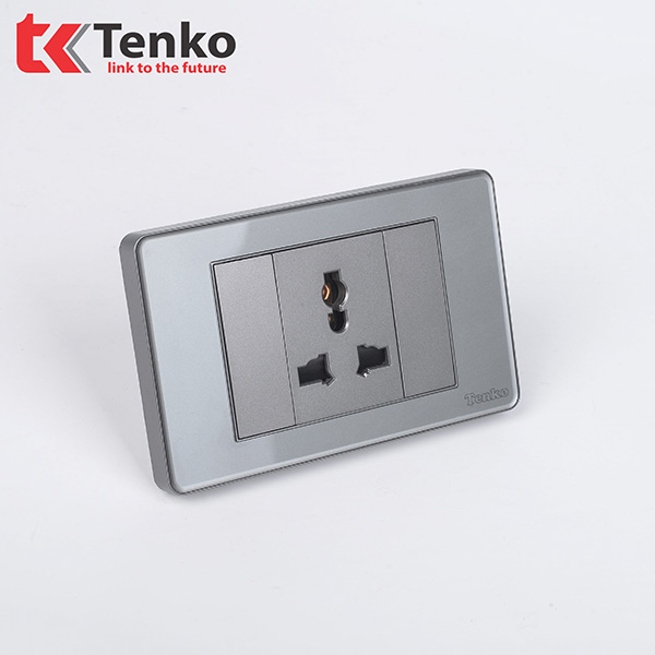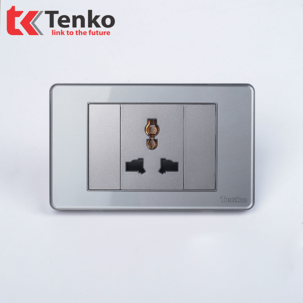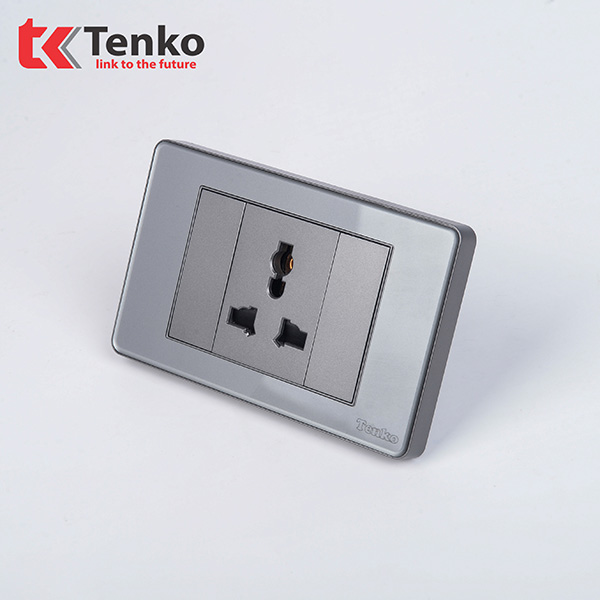 Ổ Cắm Điện 3 Chấu Mặt Nhựa Xám TENKO TK-C9-051