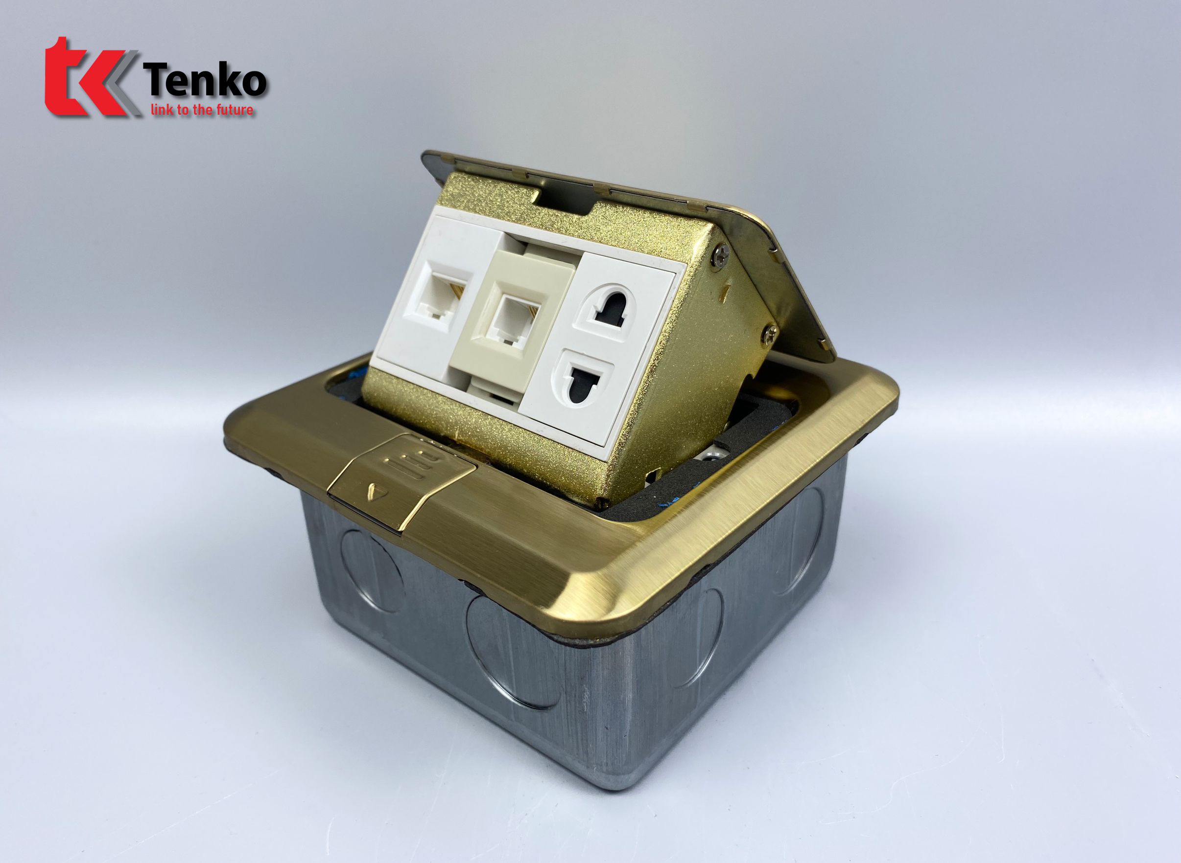 Ổ Cắm Điện Âm Sàn Kèm mạng LAN Và Điện Thoại cao cấp Tenko dòng TK-J02-05 Vàng chất lượng cao được sản suất theo tiêu chuẩn Nhật Bản.