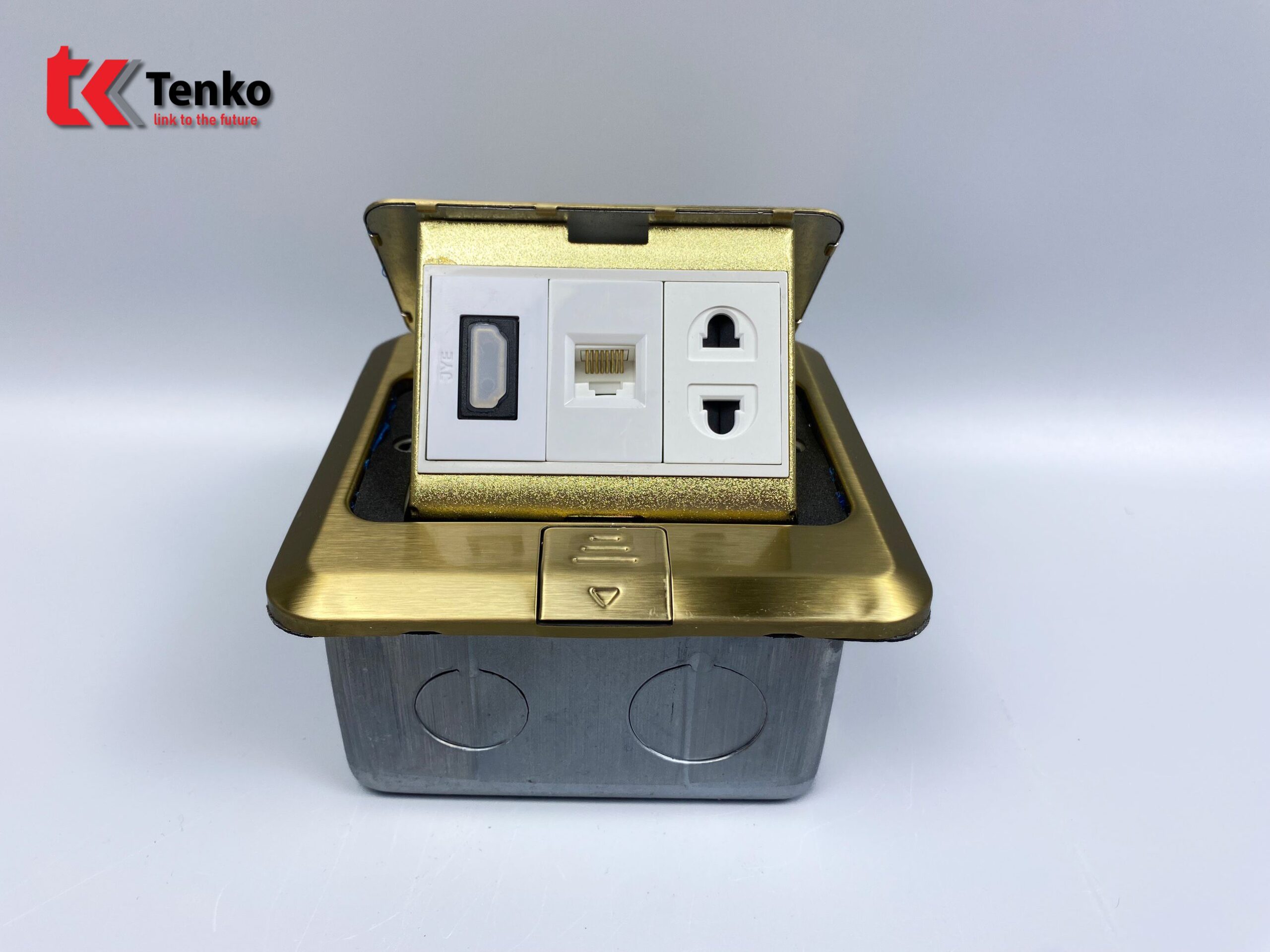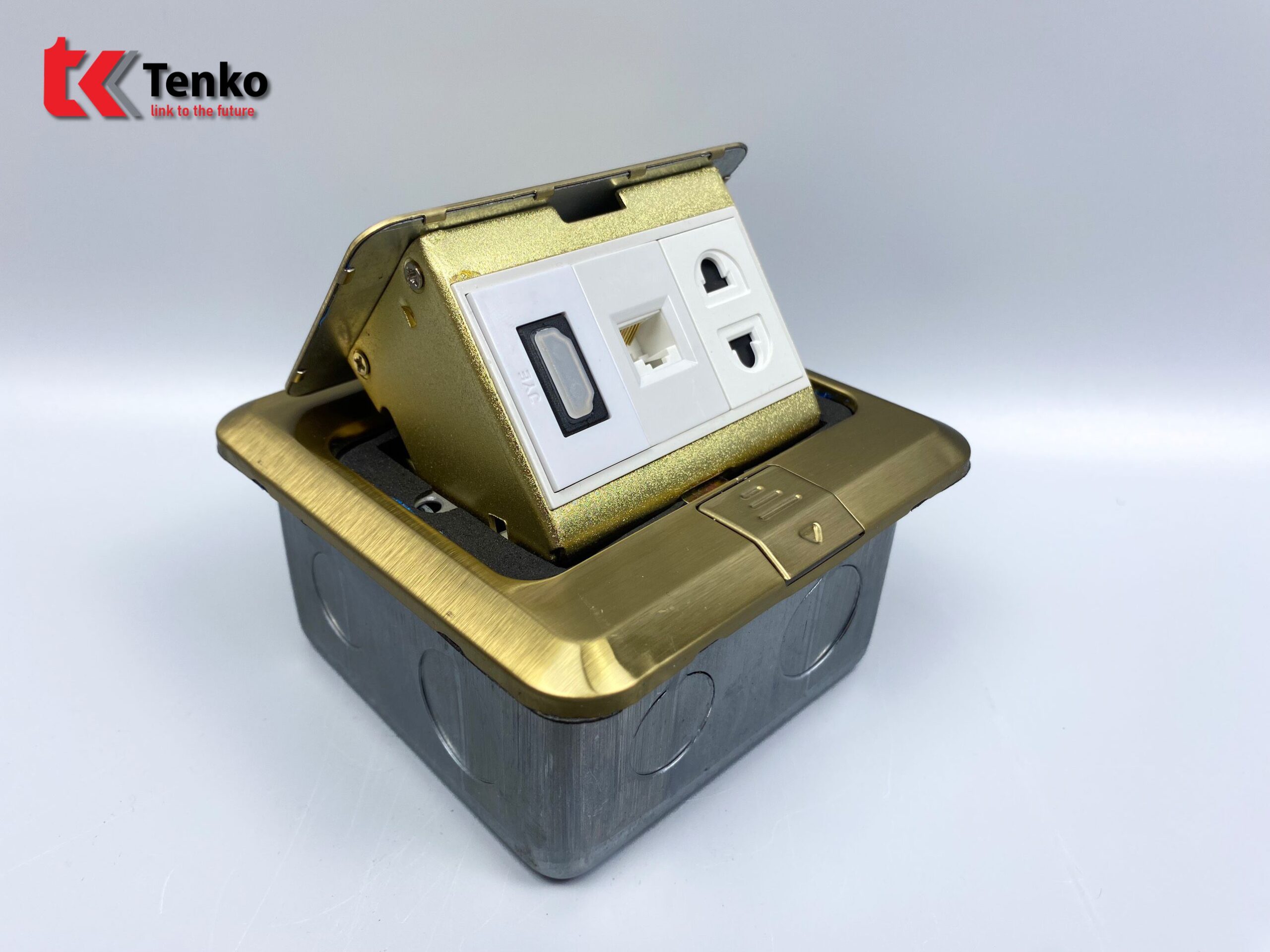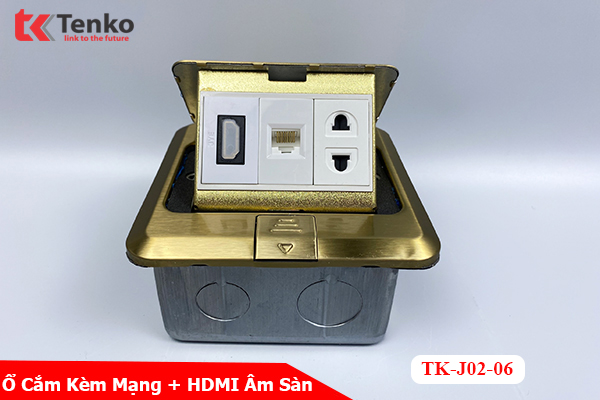 Ổ cắm Điện Âm Sàn Kèm mạng LAN Và HDMI Cao Cấp Chính Hãng Tenko dòng TK-J02-06 Vàng chất lượng cao được sản suất theo tiêu chuẩn Nhật Bản.