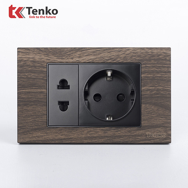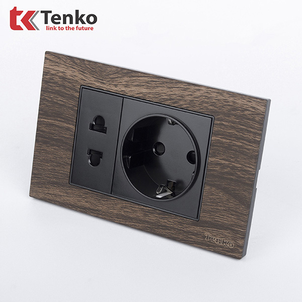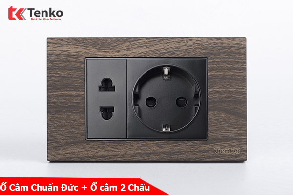Ổ cắm chuẩn Đức + ổ cắm 2 chấu âm tường TK-C6A-059
