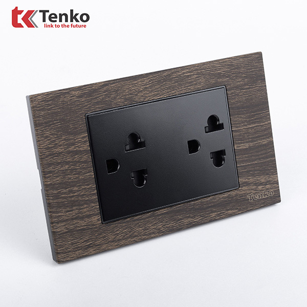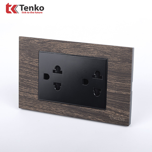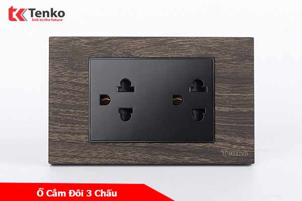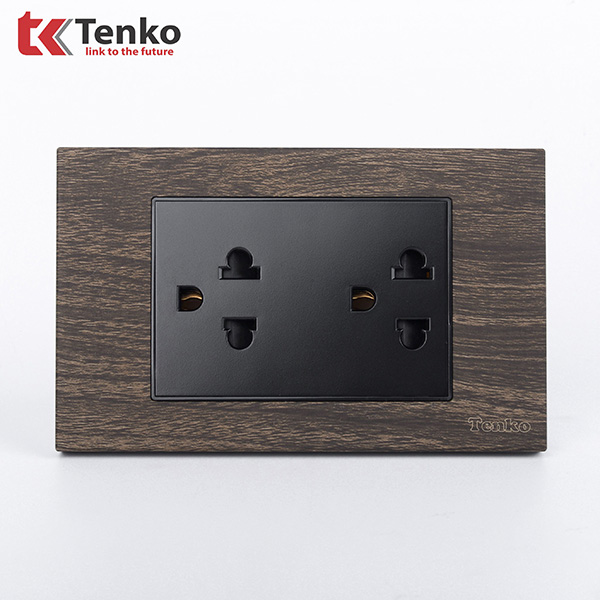 Phân Phối Ổ Cắm Điện Đôi 3 Chấu Âm Tường Vân Gỗ Có Màng Che Chống Giật Tenko TK-C6A-043