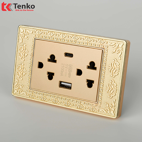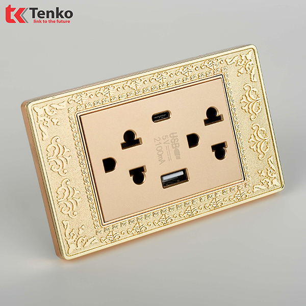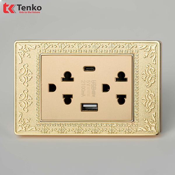 Ổ Cắm Điện 3 Chấu Có USB và Type C Mặt Hoa Văn Đồng Nguyên Khối Tenko TK-C8-045 với thiết kế đa dạng với khả năng tùy biến cao. Mang lại sự hài hòa và sang trọng cho mọi không gian.