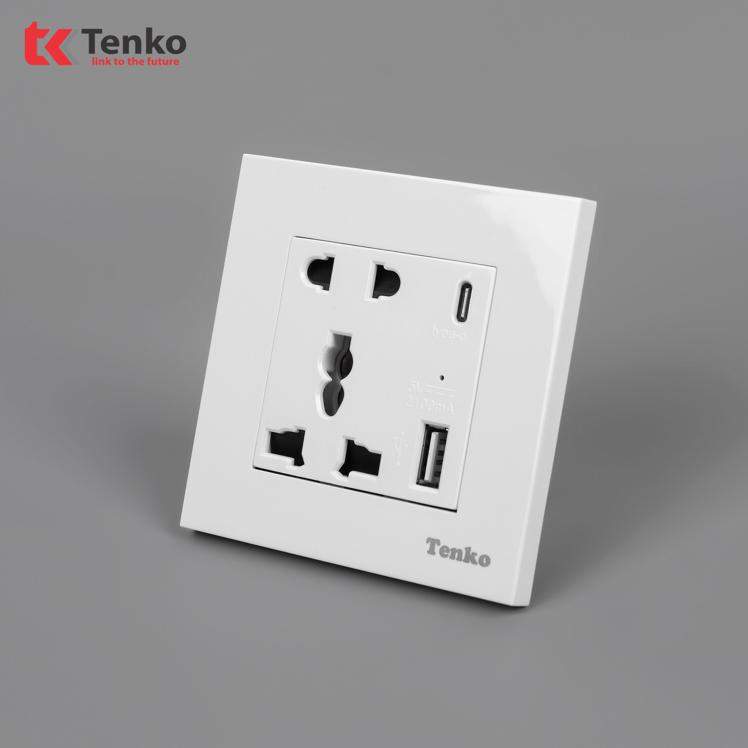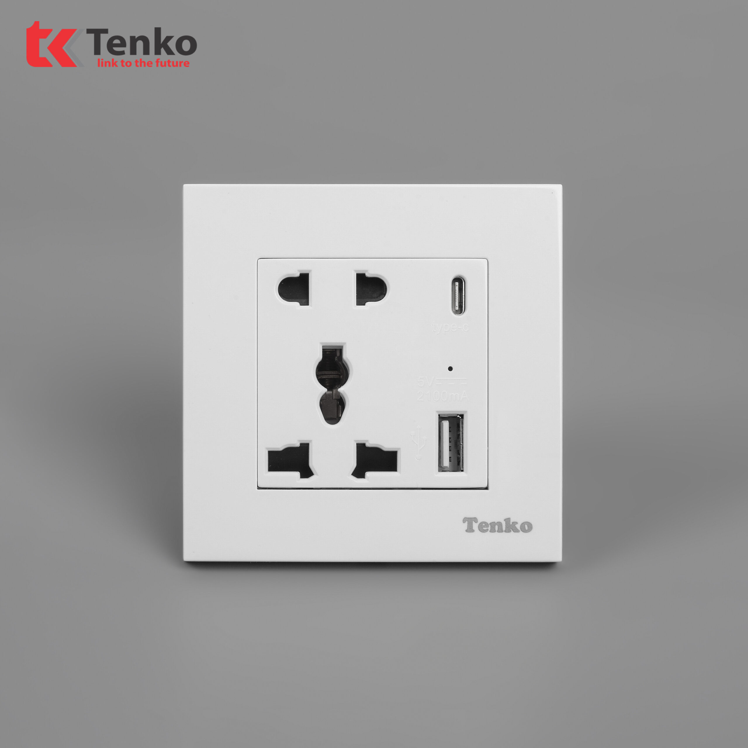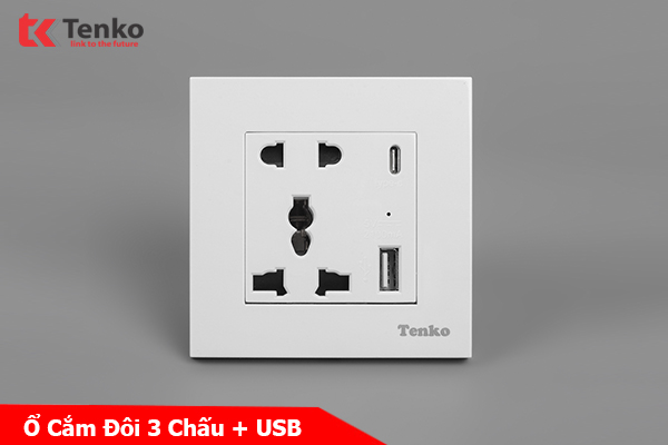 Ổ Cắm Đôi 3 Chấu Kèm Cổng USB Sạc Type A và Type C Chính Hãng Tenko TK-TT-44