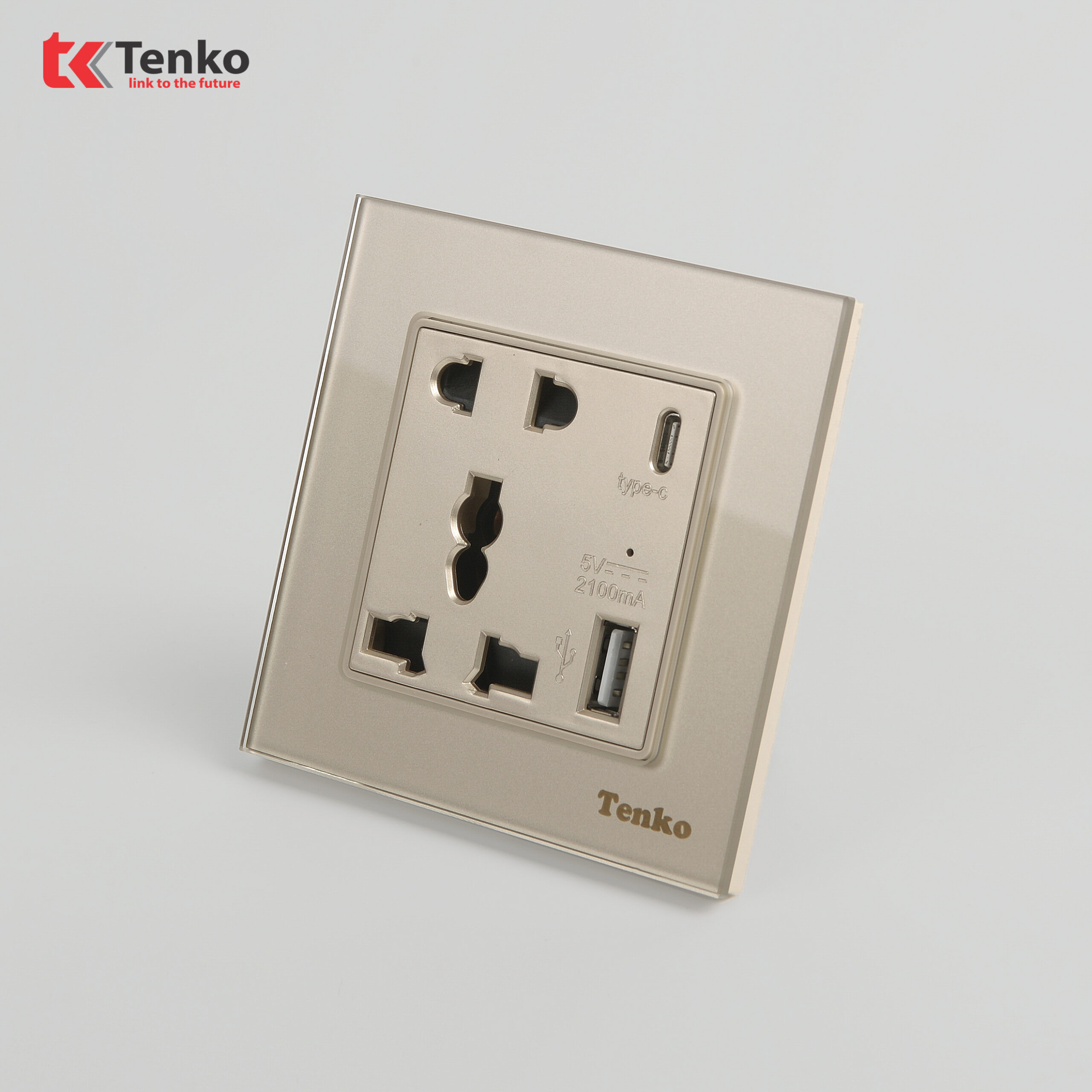 Ổ Cắm điện USB Âm Tường Mặt Kính Cường Lực Tenko TK-F71D-44 Vàng