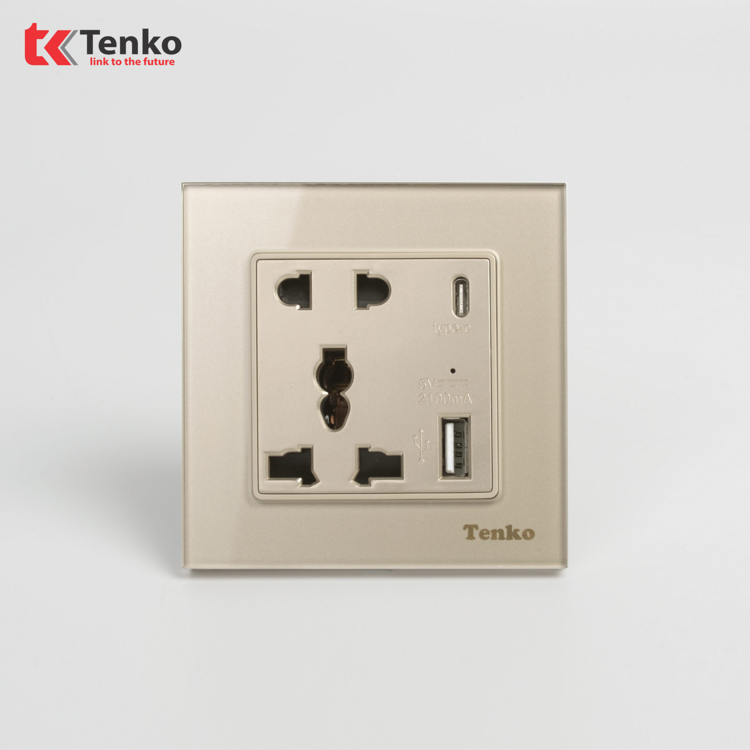 Ổ Cắm Điện USB Âm Tường Mặt Kính Cường Lực Tenko TK-F71D-44 Vàng