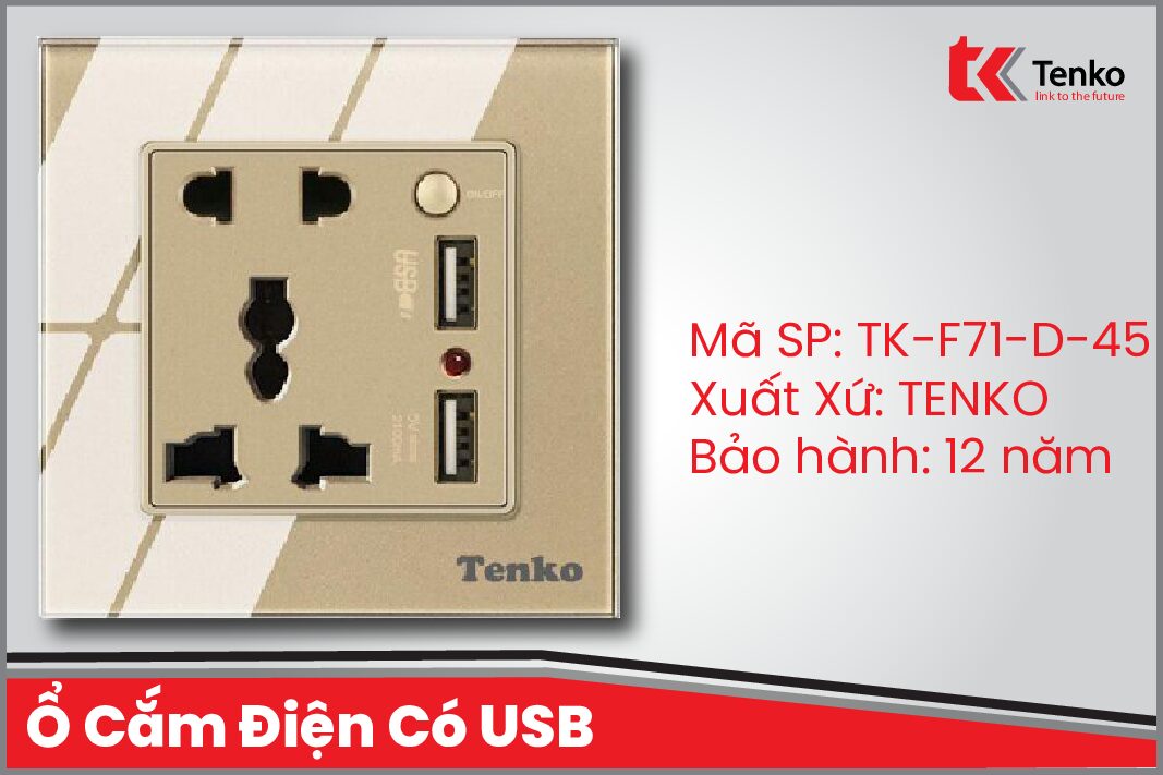 Ổ Cắm usb Âm Tường có tích hợp cổng USB sạc cho máy tính bảng, điện thoại TENKO TK-F71D-45