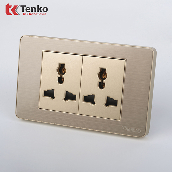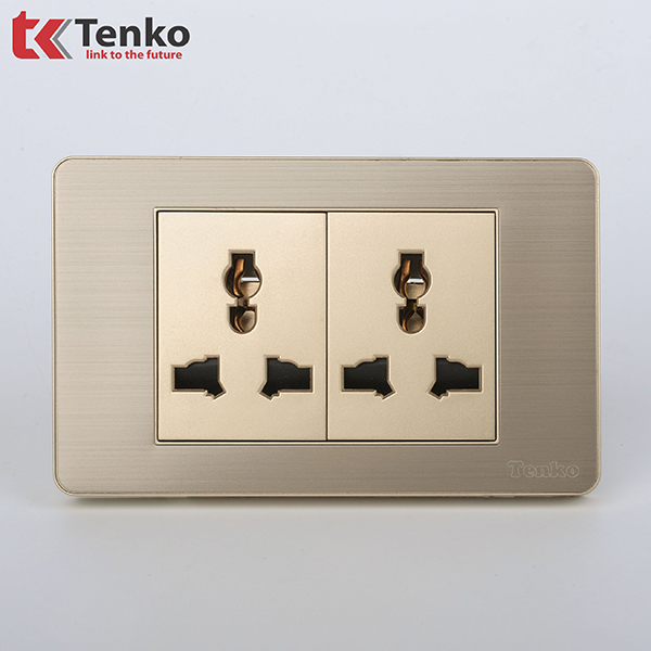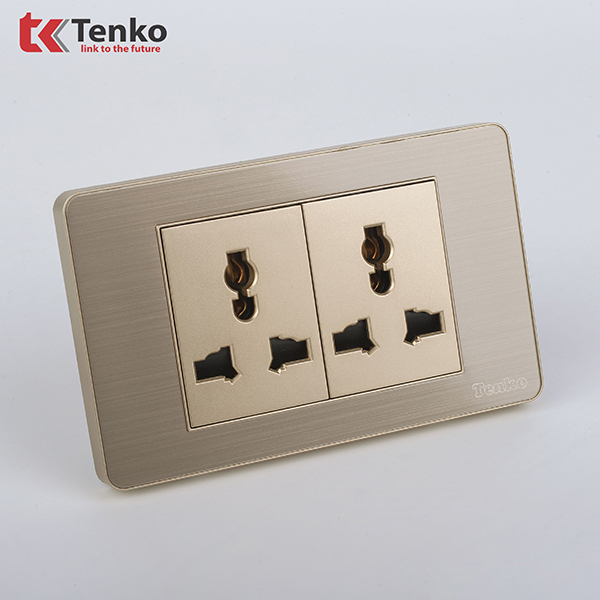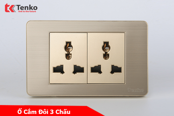 Ổ Cắm Đôi 3 Chấu Âm Tường Mặt Kim Loại TENKO TK-C7G-050 Vàng