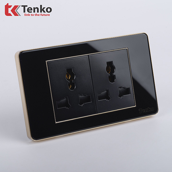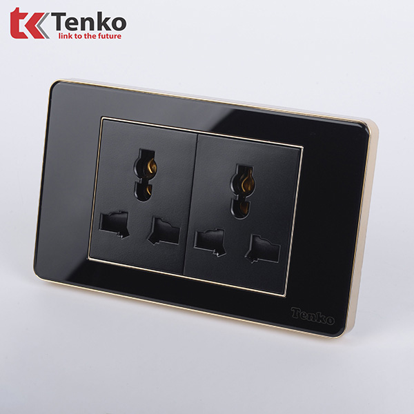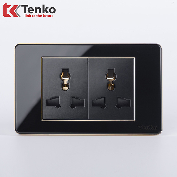 Ổ Cắm Đôi 3 Chấu Âm Tường Mặt Nhựa Epoxy TENKO TK-C26-050 Đen Viền Vàng