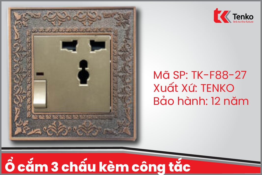 Ổ Cắm Đôi 3 Chấu Mặt Vuông Tân Cổ Điển Tenko TK-F88-18