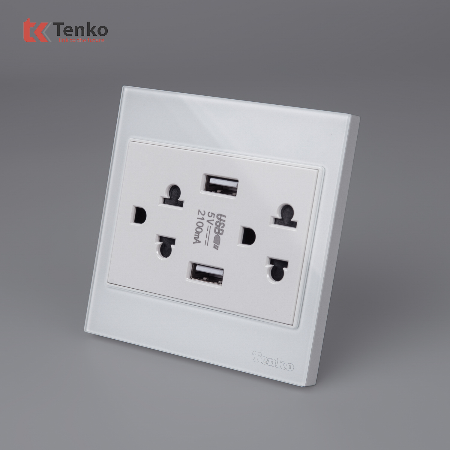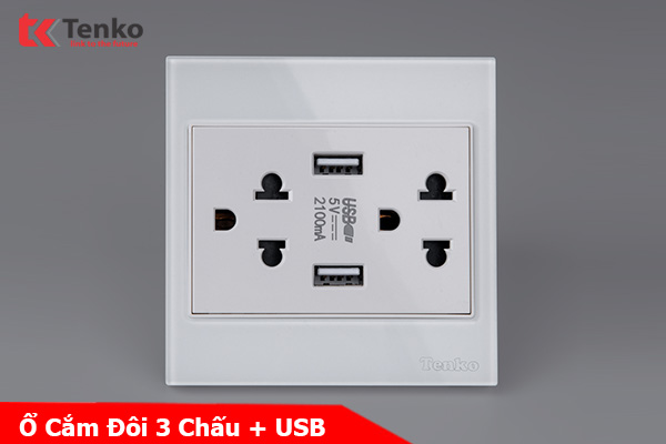 Ổ Cắm Đôi 3 Chấu + USB Mặt Kính Cường Lực Tenko TK-V18-046 – Giải Pháp Điều Khiển Điện Hiện Đại, Bền Bỉ