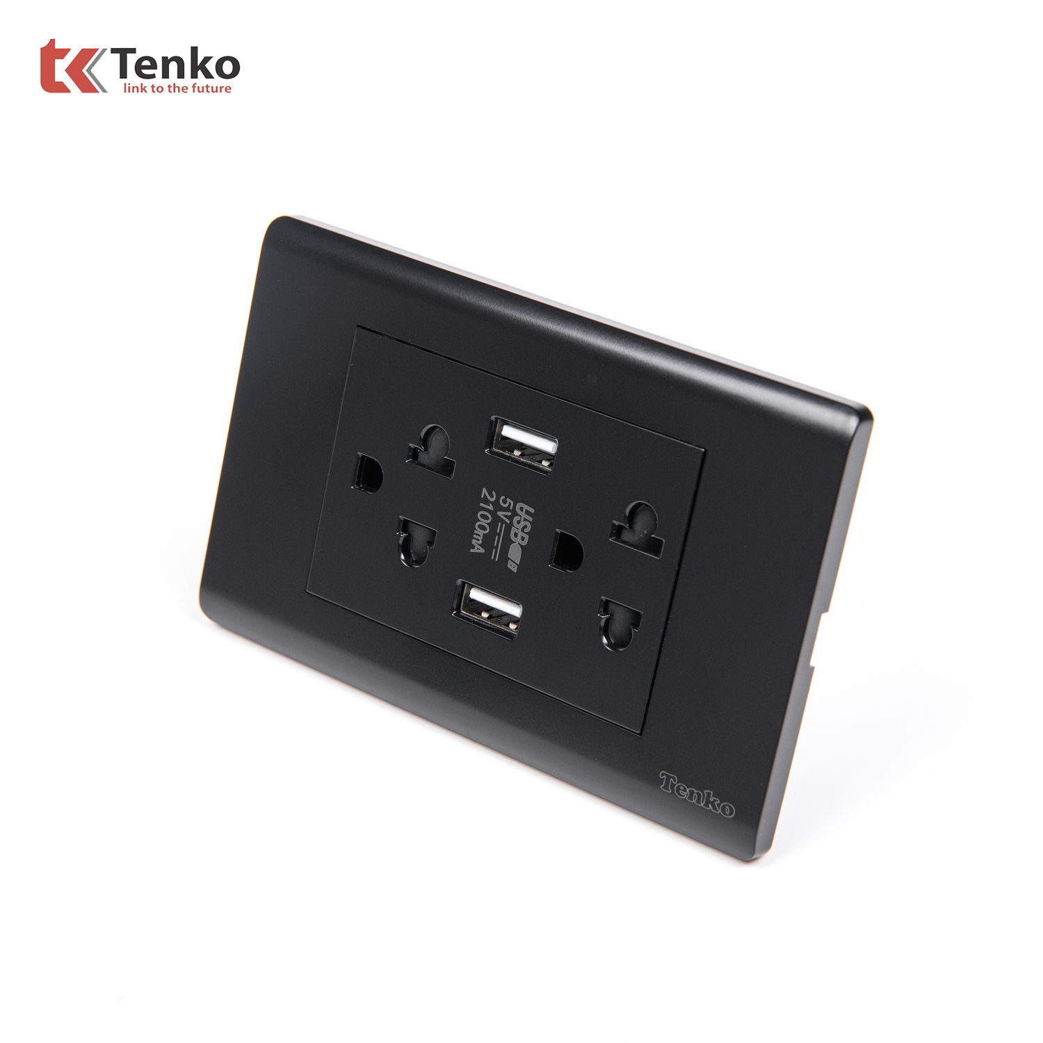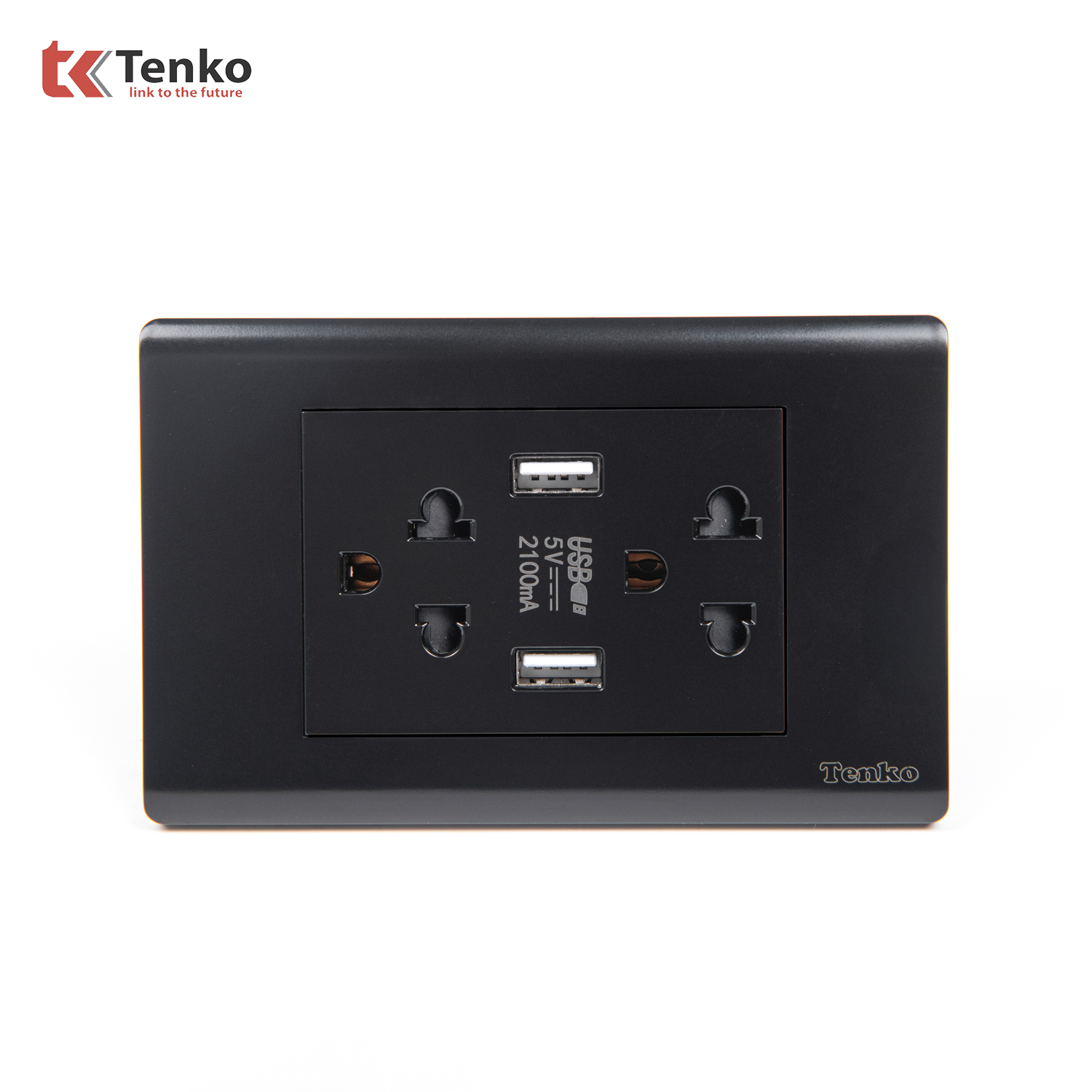 Ổ Cắm Đôi 3 Chấu Và USB Âm tường Cao Cấp TENKO TK-C25-045 – Mặt Nhựa PC Đen