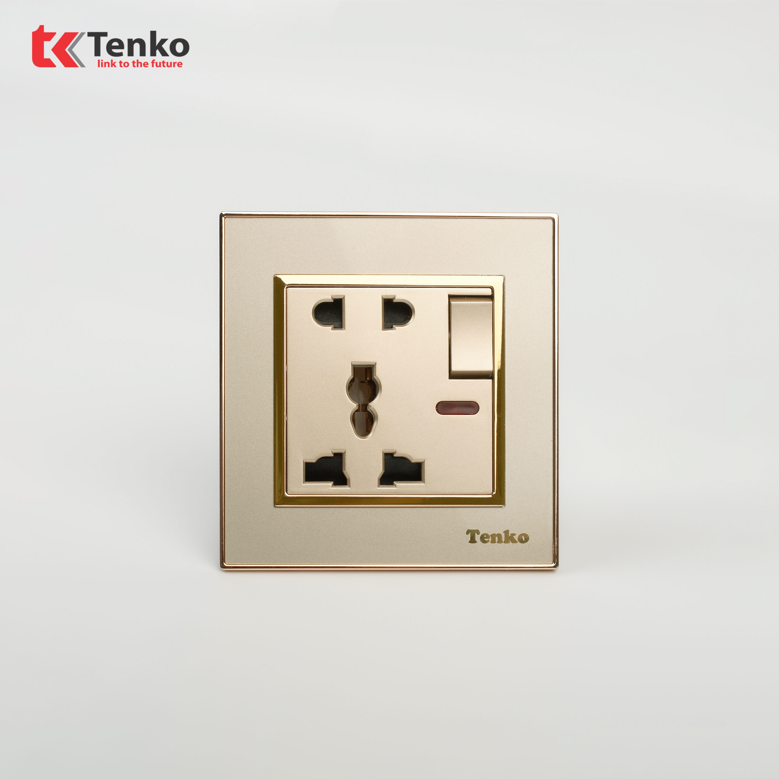 Ổ Cắm Đôi Kèm Công Tắc Nguồn Điện Mặt Nhựa Vàng Viền Vàng Tenko TK-F66-28