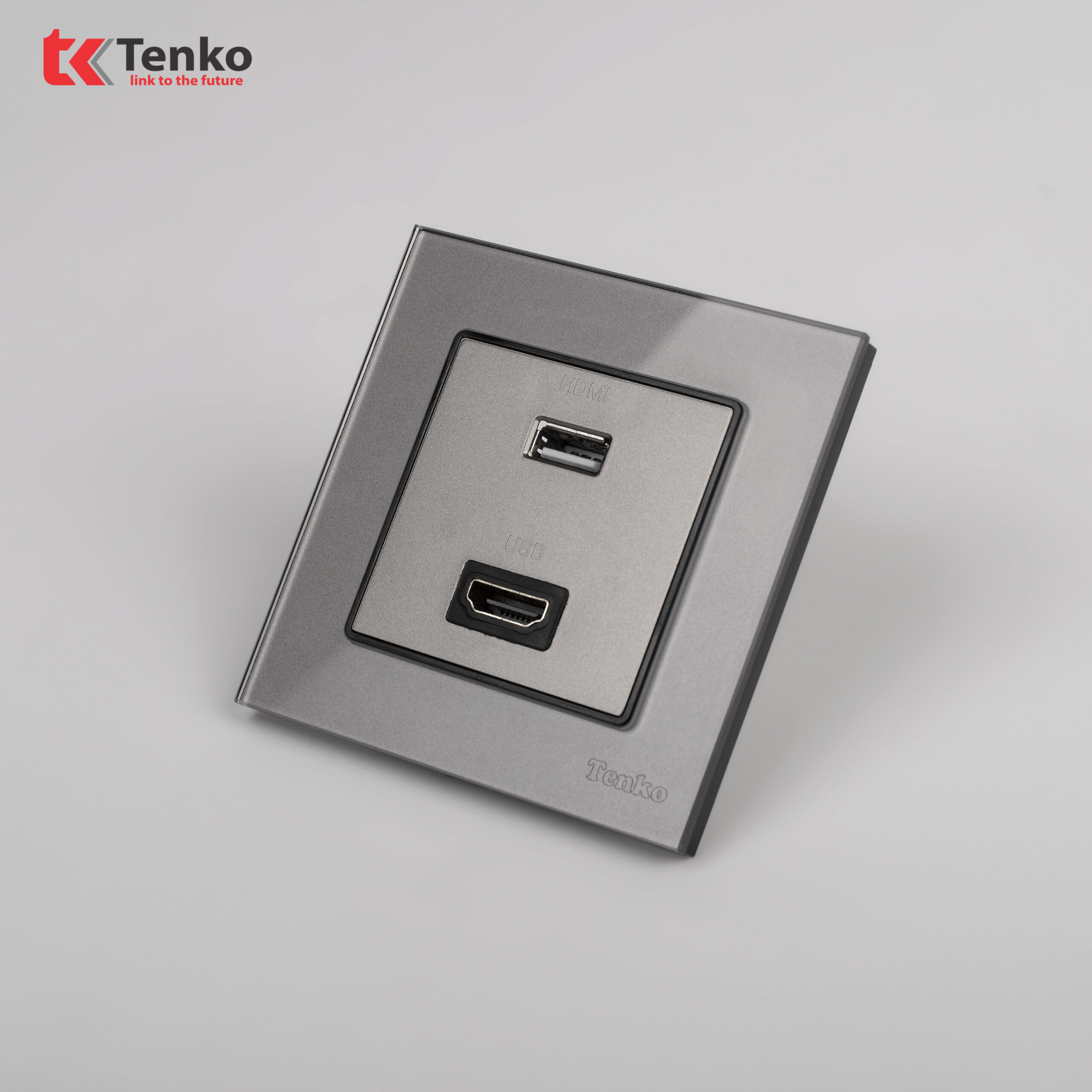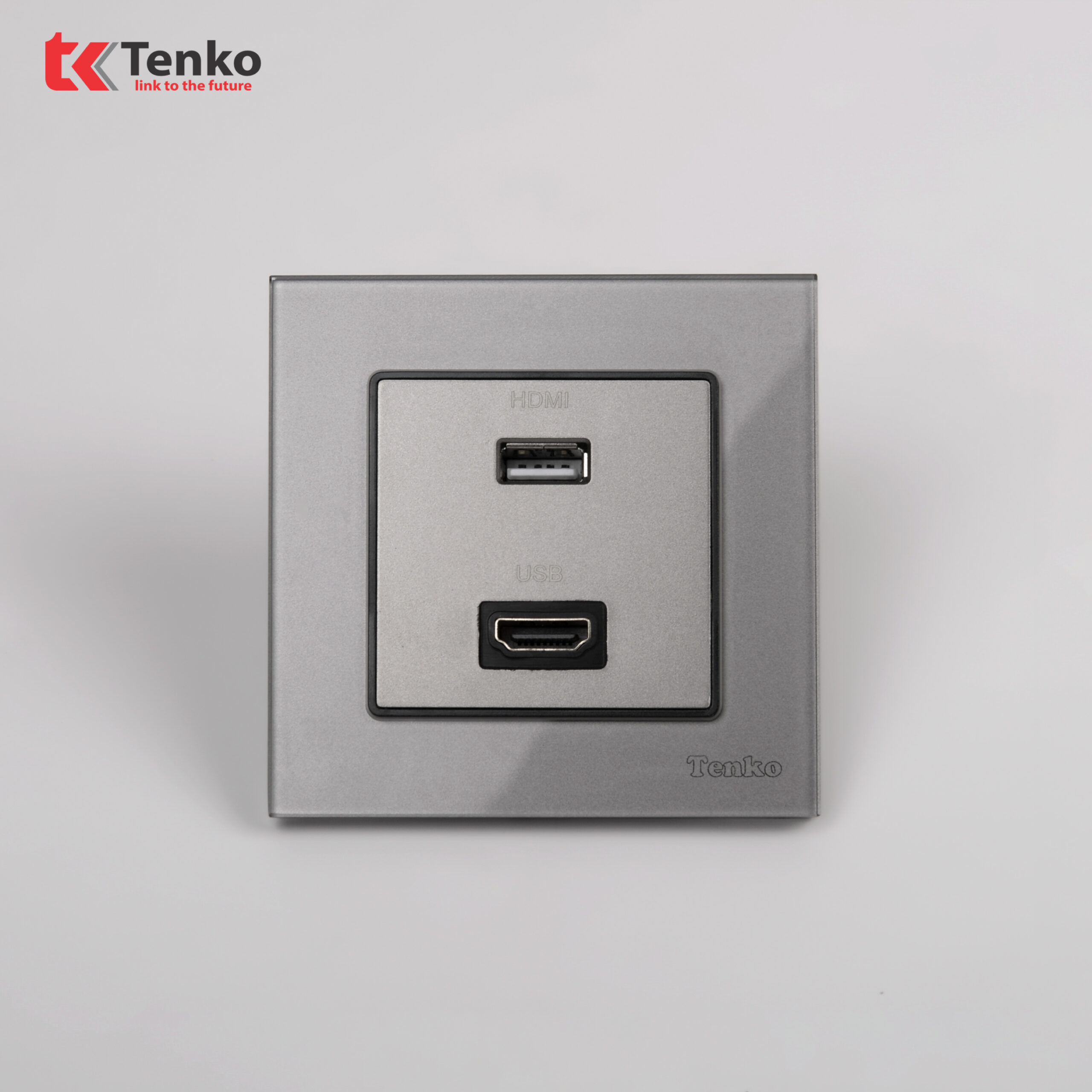 Ổ Cắm HDMI + USB Mặt Kính Cường Lực Tenko TK-F71D-76 Xám