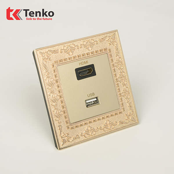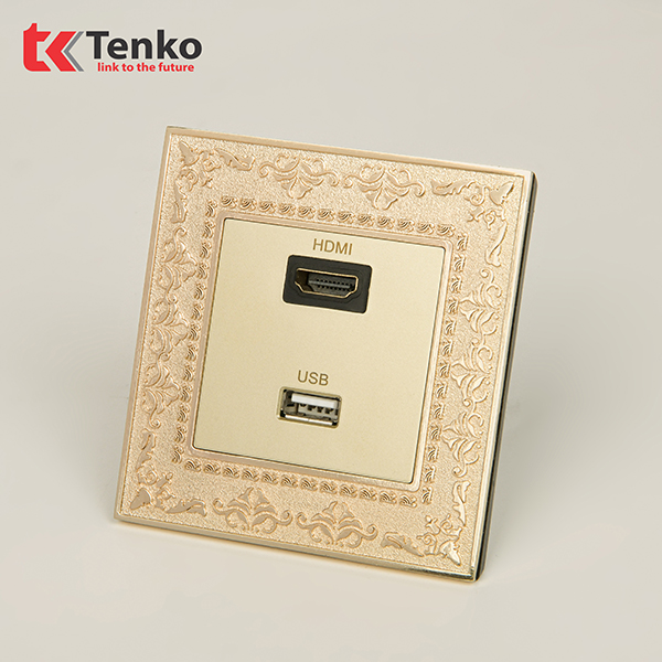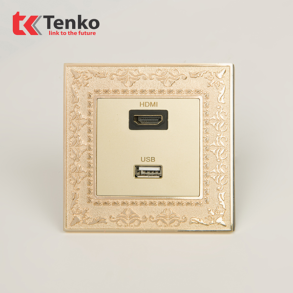 Ổ Cắm HDMI + USB Mặt Vuông Tân Cổ Điển Tenko TK-F88-76