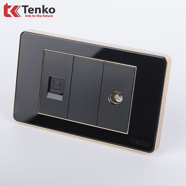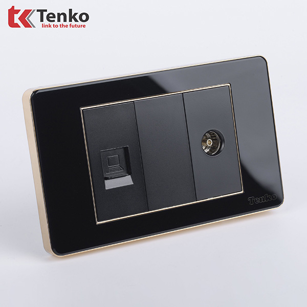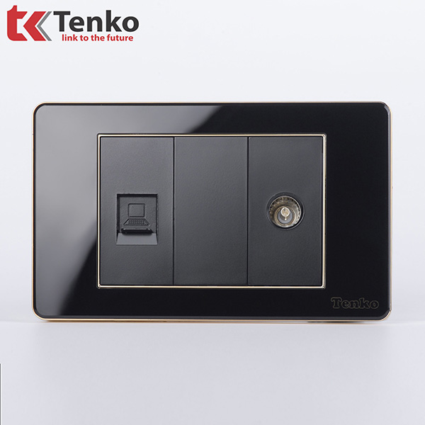 Ổ Cắm LAN và TIVI Âm Tường Cao Cấp Thương Hiệu Nhật Bản TENKO TK-C26-075 Đen Viền Vàng
