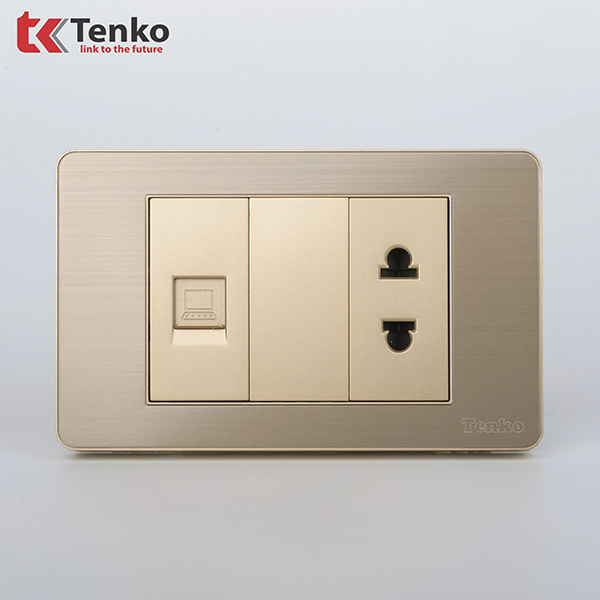 Ổ Cắm Mạng LAN Kèm Ổ Cắm Đơn Thông Dụng Tenko TK-C7G-078 Vàng