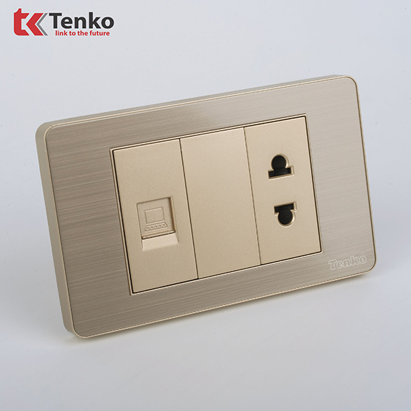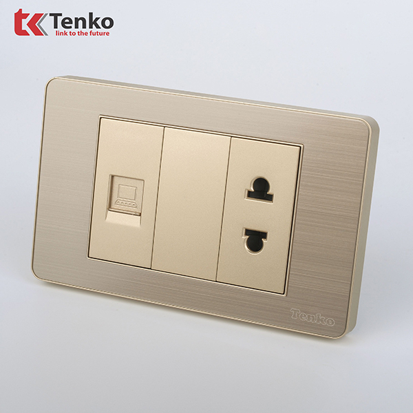 Ổ cắm mạng LAN kèm ổ cắm đơn âm tường mặt kim loại vàng Tenko TK-C7G-078 là dòng sản phẩm cao cấp nhất của Tenko. Sản phẩm được thiết kế rất tinh tế, sang trọng, hiện đại đạt tiêu chuẩn chất lượng quốc tế. Đây là dòng sản phẩm bán rất chạy trên thị trường. Phù hợp lắp đặt tại các công trình lớn và dân dụng.