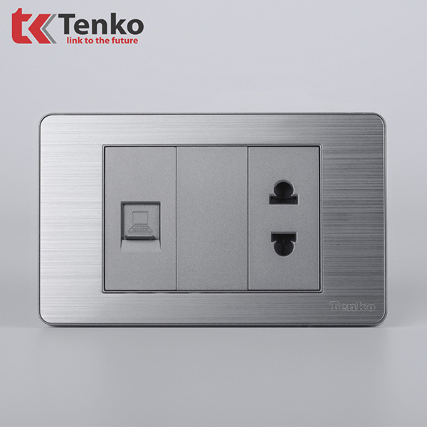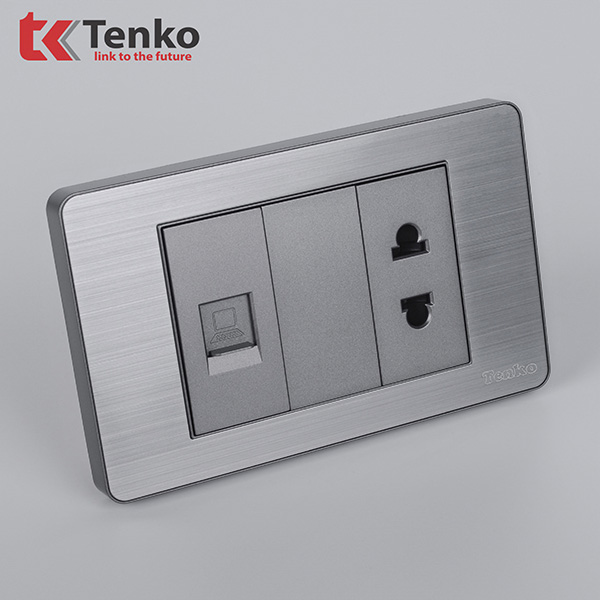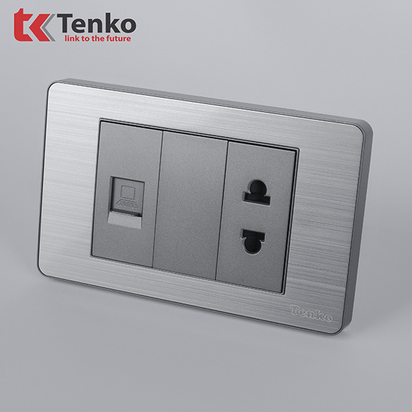 Ổ Cắm Mạng LAN Kèm Ổ Cắm Đơn Thông Dụng Mặt Hợp Kim Tenko TK-C7-078 Xám