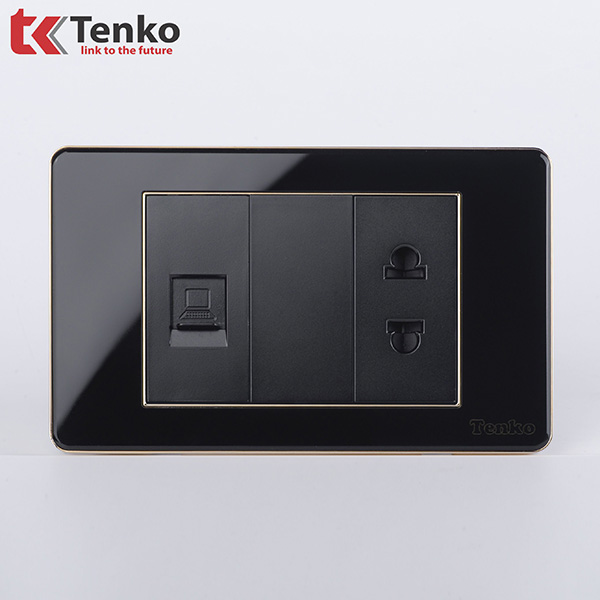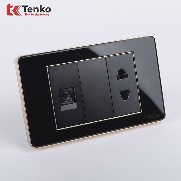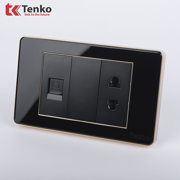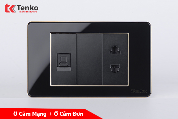 Ổ Cắm Mạng LAN Kèm Ổ Cắm Đơn Thông Dụng Tenko TK-C26-078 Đen Viền Vàng