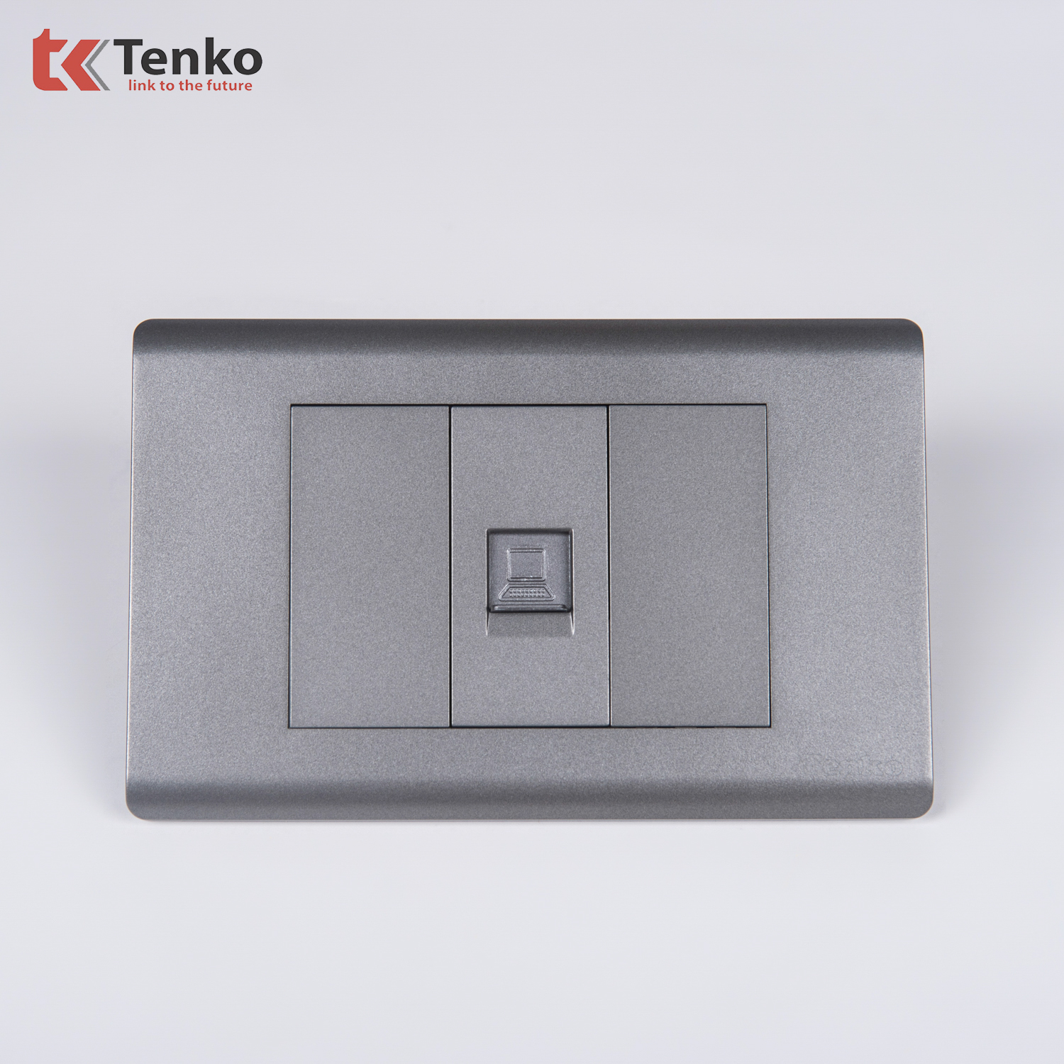 Ổ Cắm Mạng LAN (RJ45) Cho Tivi và Máy Tính Âm Tường TK-C25-073 Mặt Nhựa PC Xám