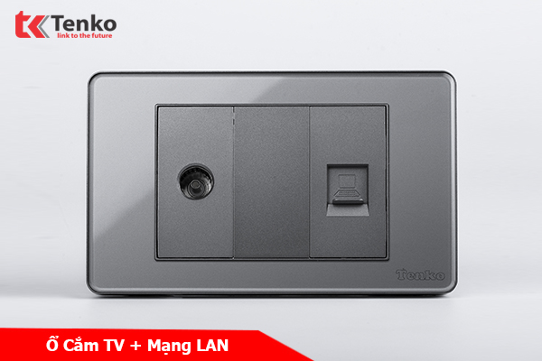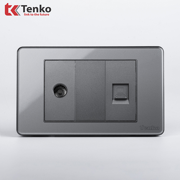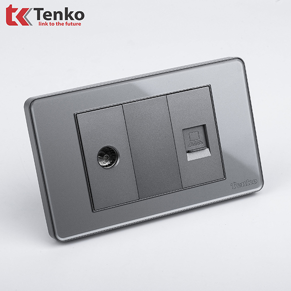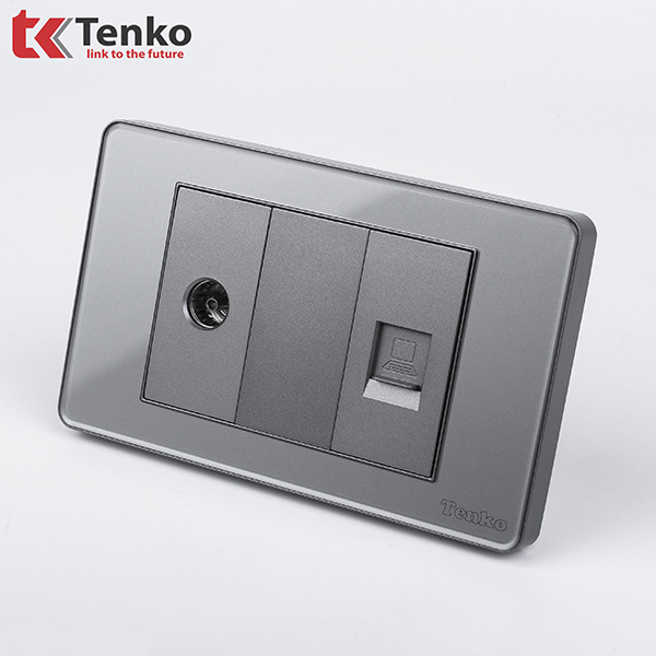 Ổ Cắm Mạng LAN(Rj45) Và TV Âm Tường Cao Cấp Thương Hiệu Nhật TENKO TK-C9-075 Xám Bo Viền