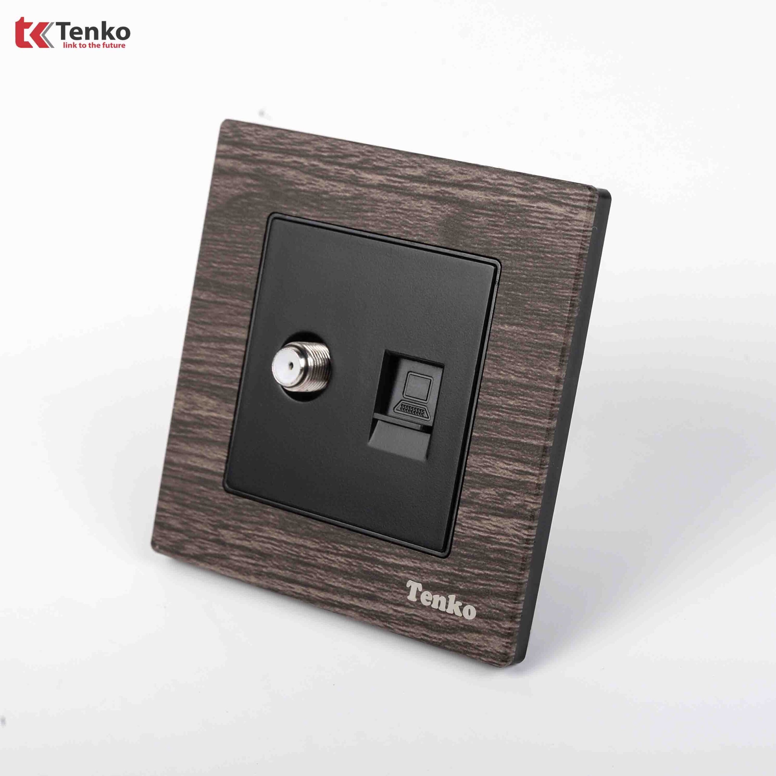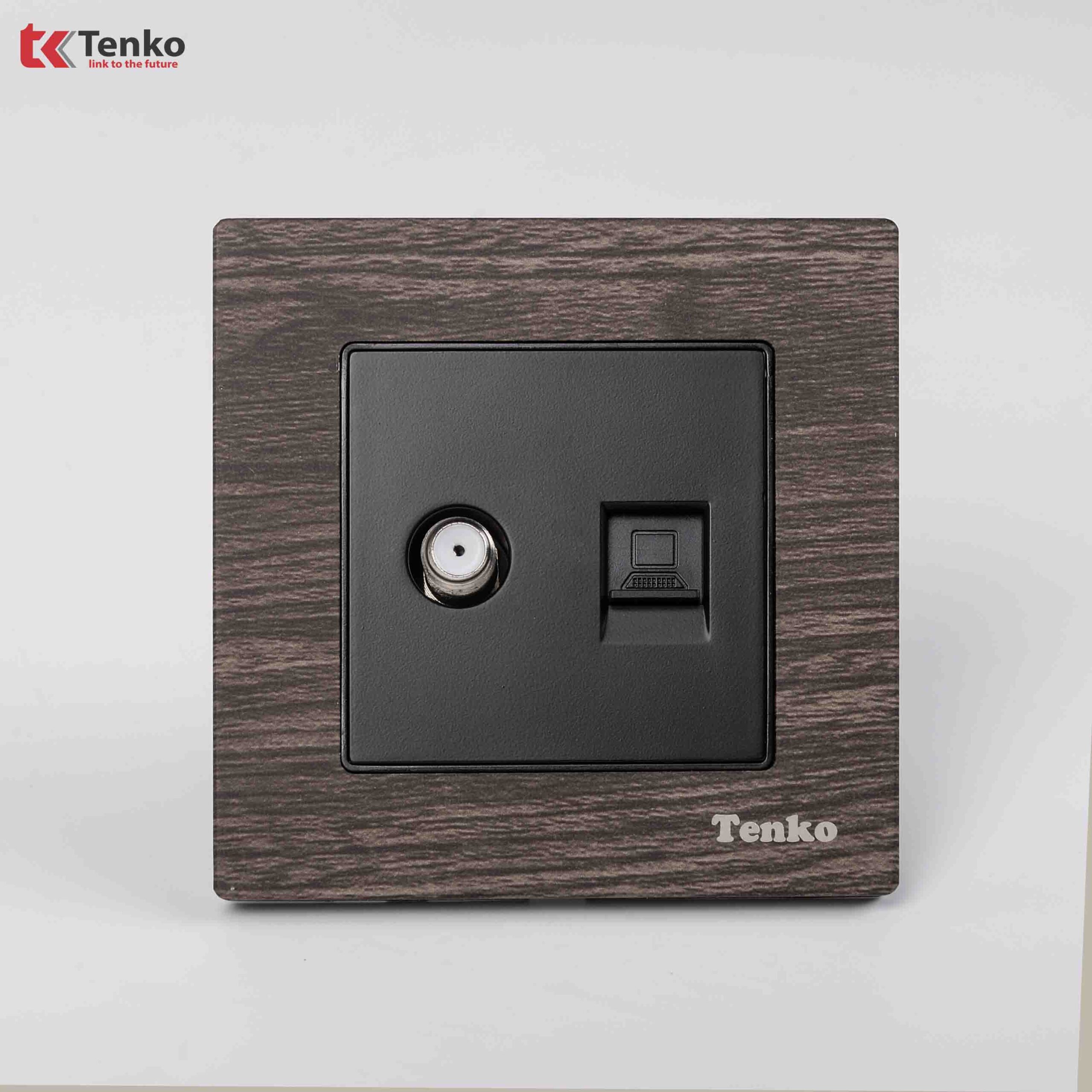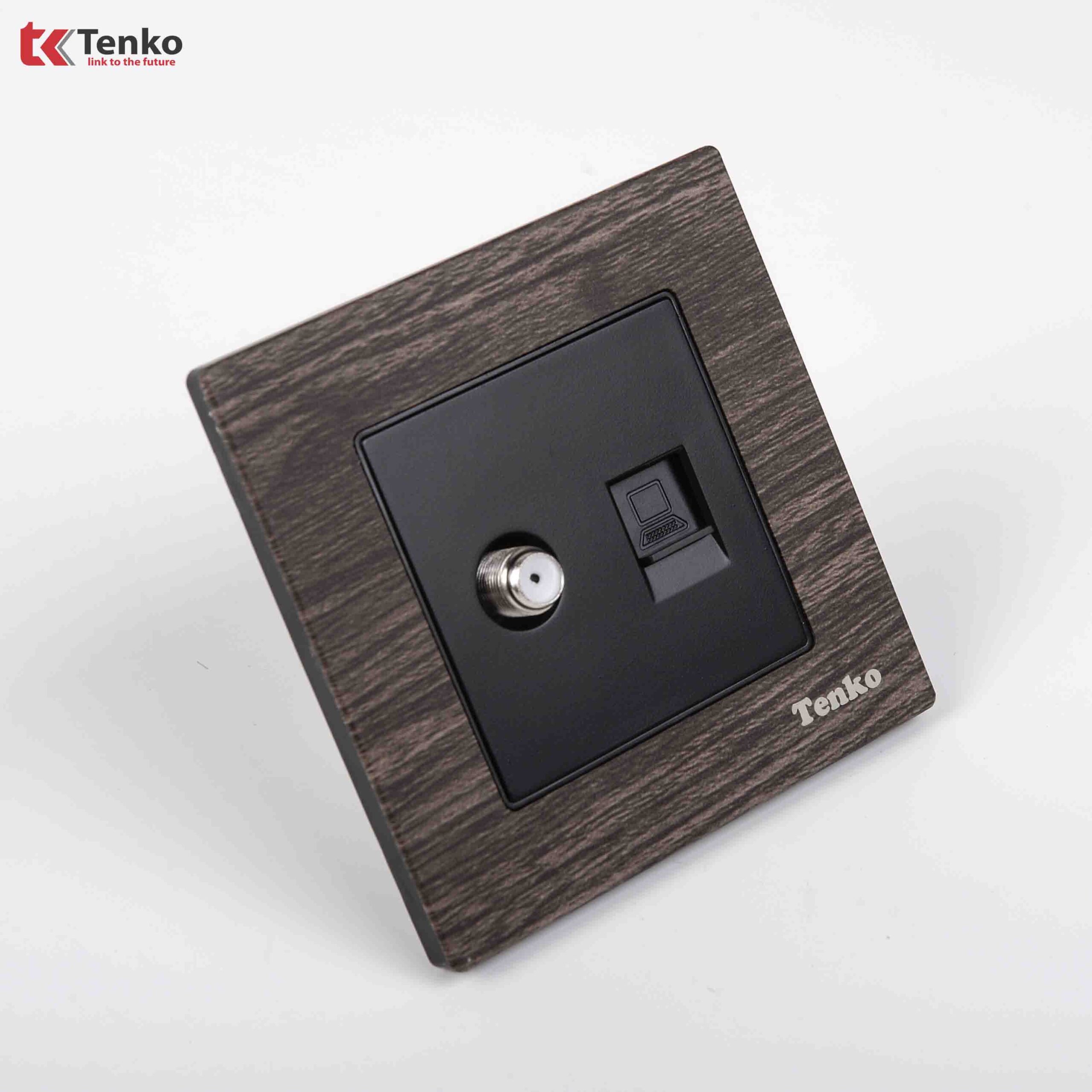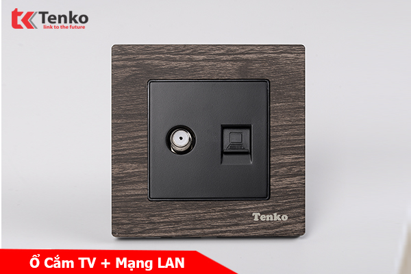 Ổ Cắm Truyền Hình + Ổ Cắm Mạng Mặt Vân Gỗ Tenko TK-F71A-51