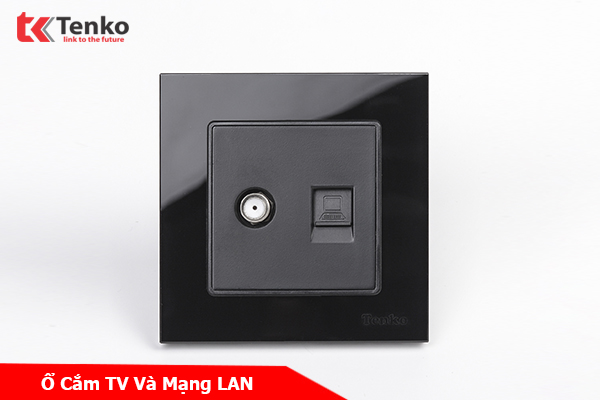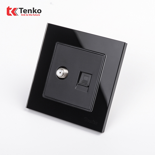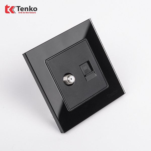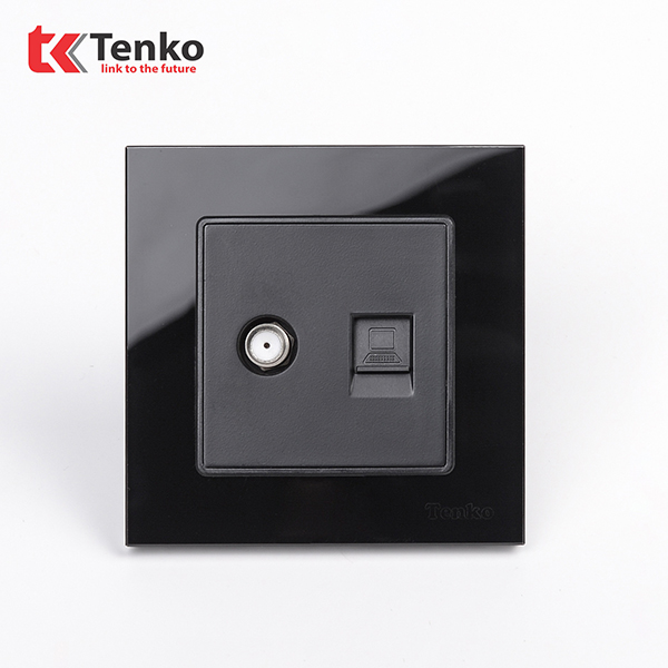 Ổ Cắm Truyền Hình + Ổ Cắm Mạng Mặt Kính Cường Lực Tenko TK-F71D-51 Đen