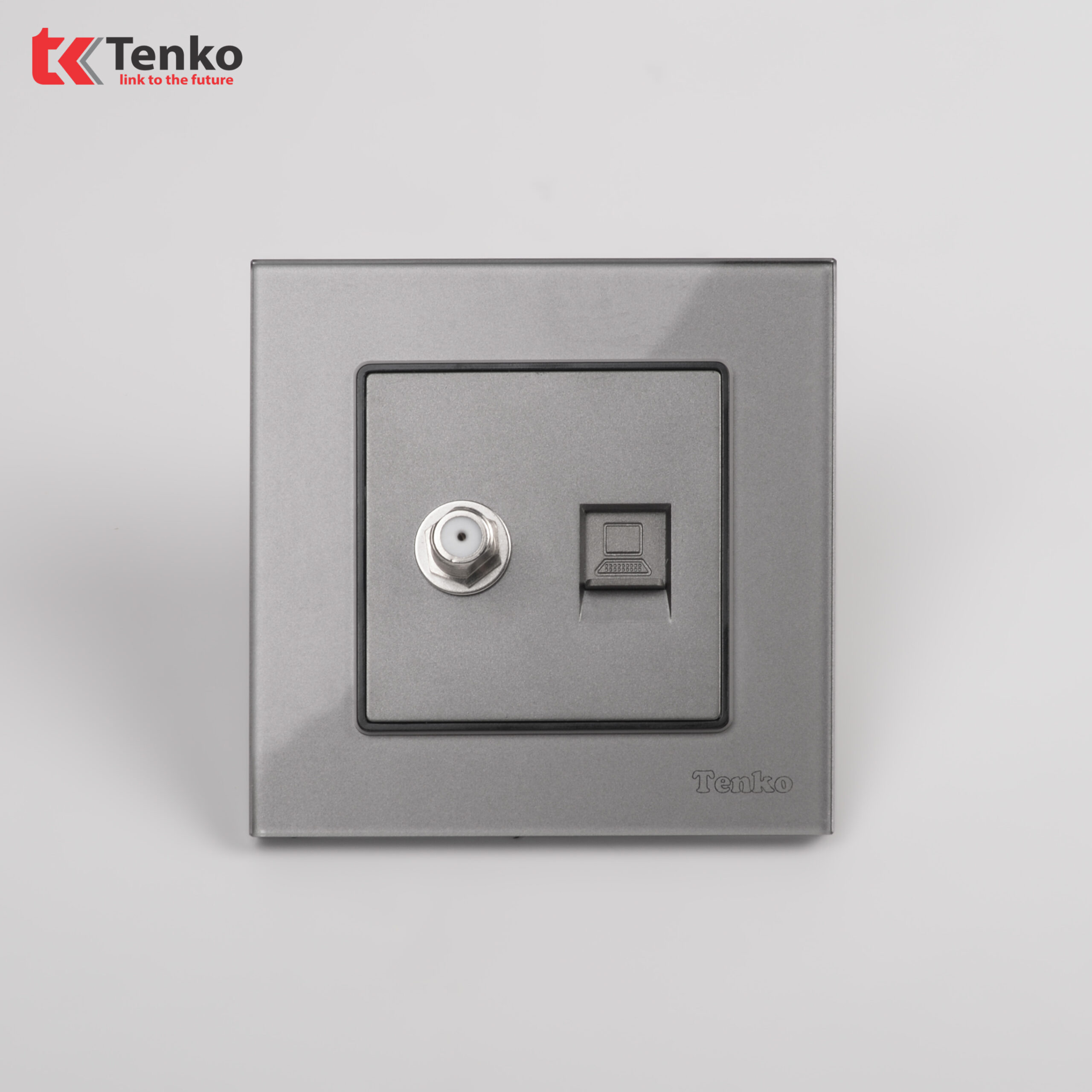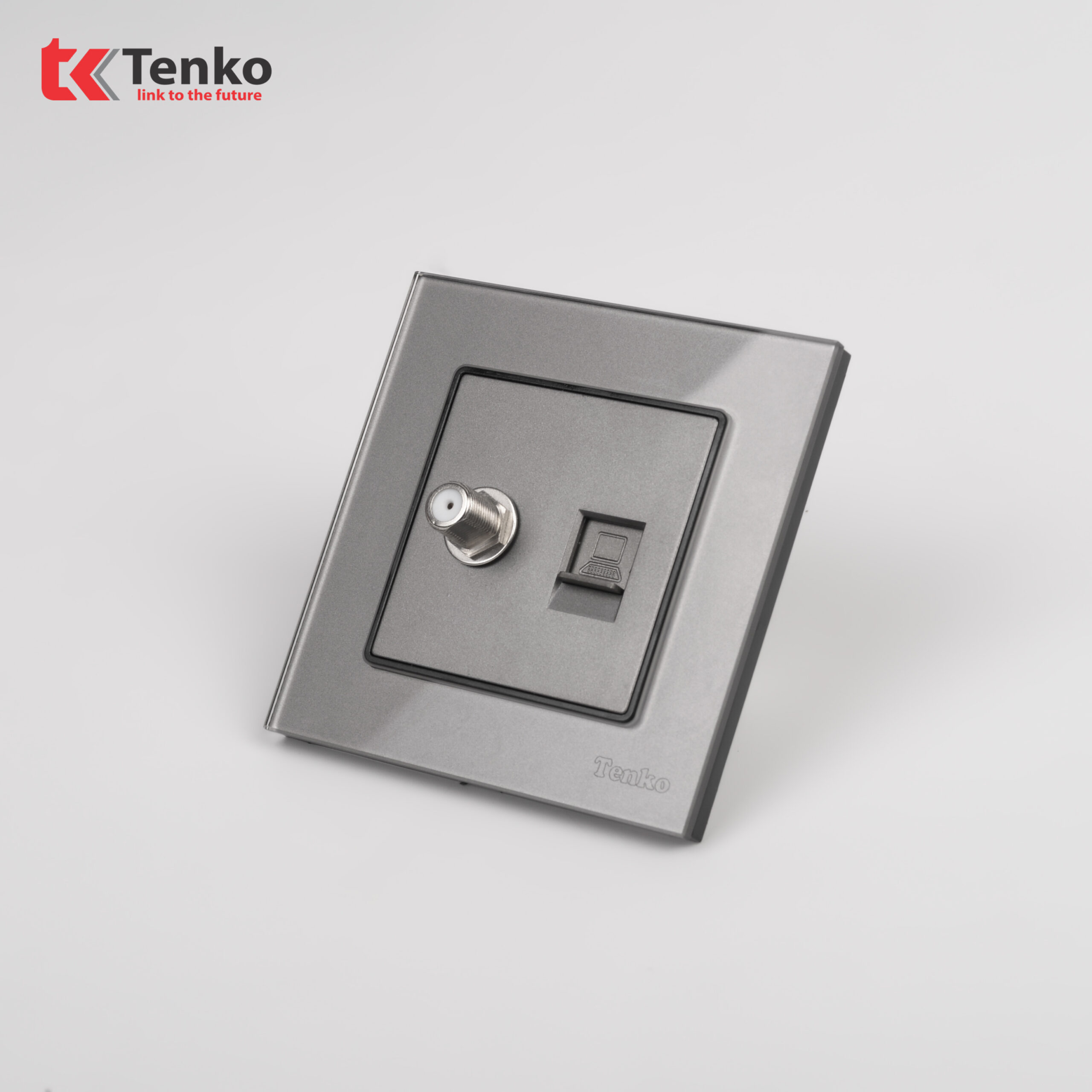 Ổ Cắm Truyền Hình + Ổ Cắm Mạng Mặt Kính Cường Lực Tenko TK-F71D-51 Xám