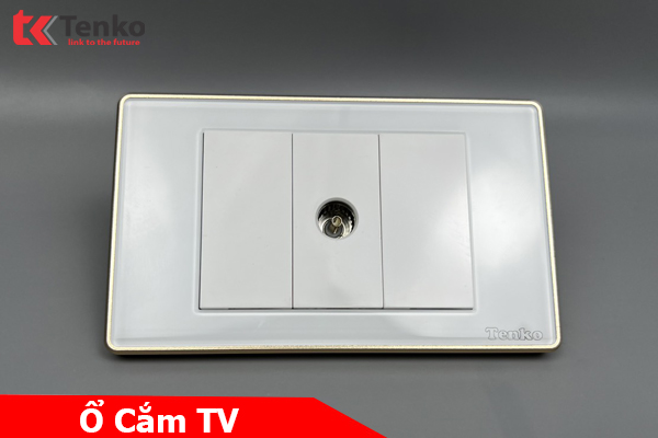 Ổ Cắm TV Âm tường Mặt Kính Cường Lực Trắng Viền Vàng TENKO TK-C18W-071