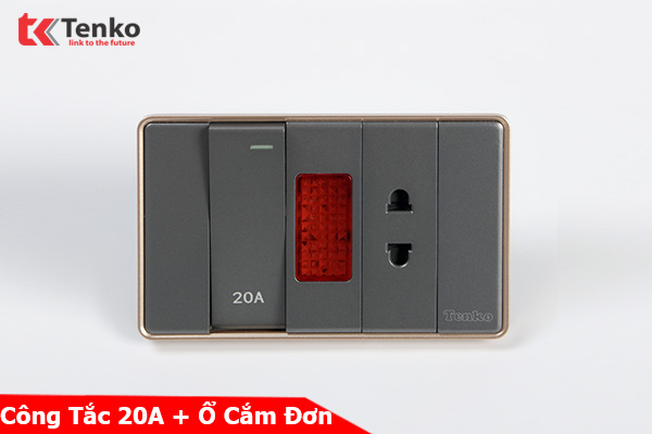 Thông số kỹ thuật Ổ Cắm Và Công Tắc Điện 20A Công Suất Cao Âm Tường Mặt Tràn Viền Tenko TK-C1-080 Xám Viền Vàng