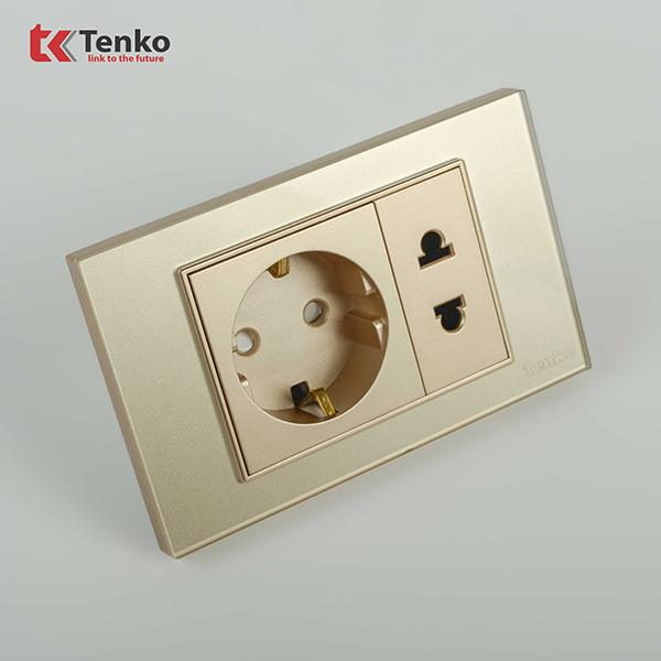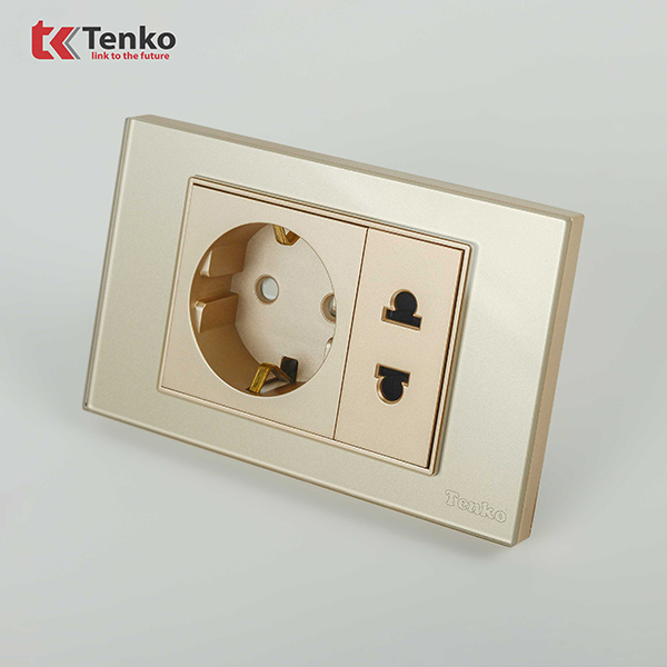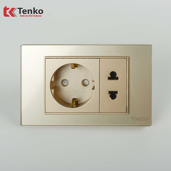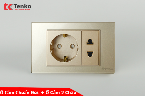 Ổ cắm 2 Chấu Và Ổ Cắm Chuẩn Đức Âm tường Thương Hiệu Nhật Bản Mặt Vàng TENKO TK-C18-059 với thiết kế đa dạng với khả năng tùy biến cao. Mang lại sự hài hòa và sang trọng cho mọi không gian.