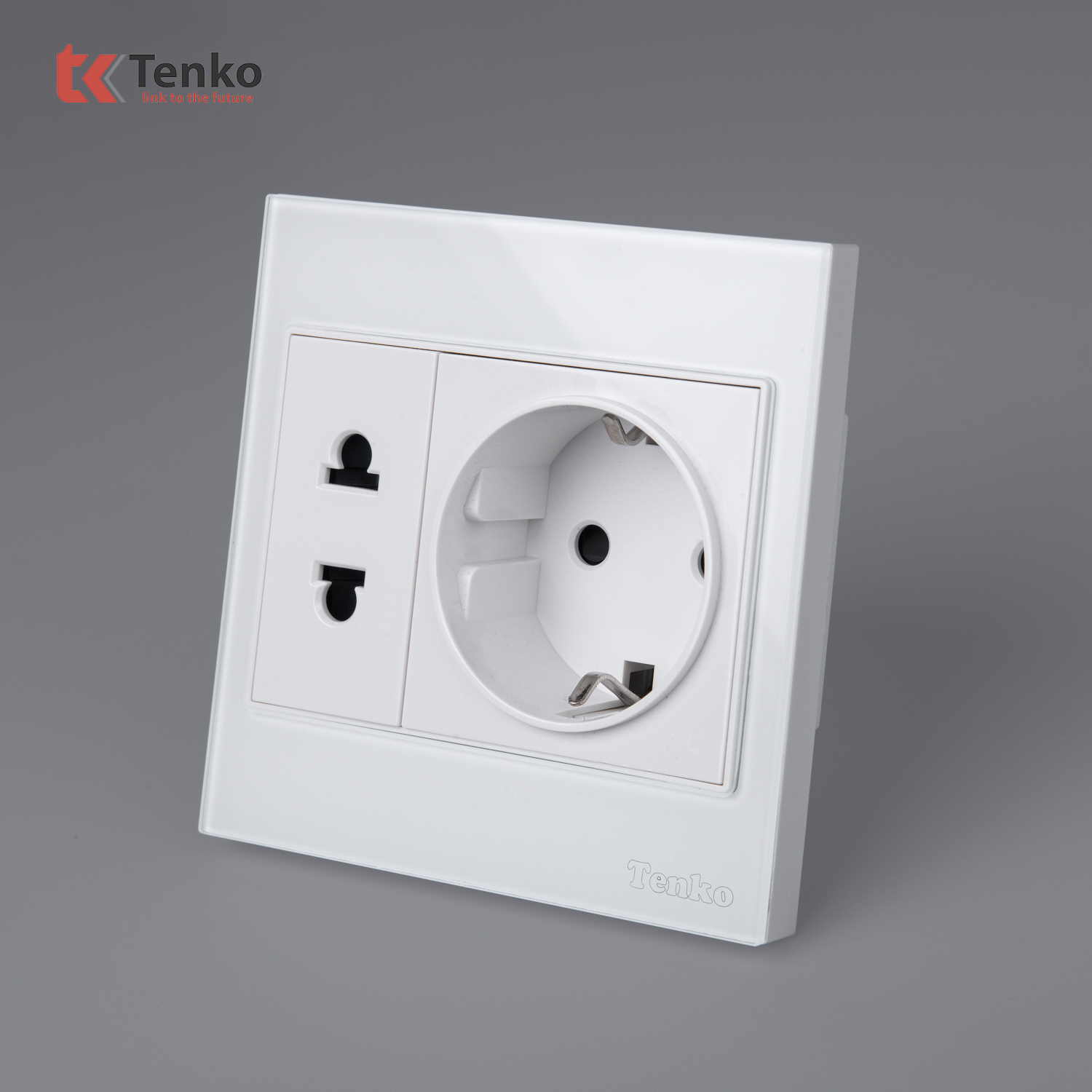 Trong xu hướng giao thoa kiến trúc, việc sử dụng các thiết bị điện tiêu chuẩn quốc tế ngày càng phổ biến tại Việt Nam. Tenko TK-V18-059 là sự kết hợp độc đáo giữa ổ cắm 2 chấu thông dụng và ổ cắm chuẩn Đức (Schuko) trên nền mặt kính cường lực trắng sang trọng, mang lại giải pháp cấp nguồn an toàn và hiện đại cho mọi không gian.