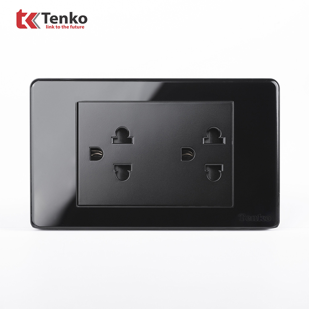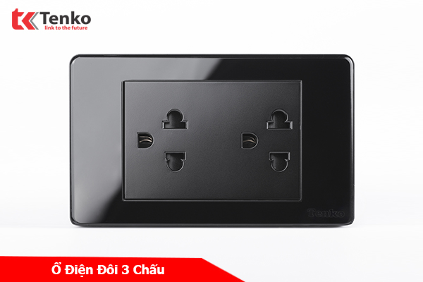 Ổ Điện Đôi 3 Chấu Âm Tường Cao Cấp Thương Hiệu Nhật Bản TENKO TK-C9-044 Đen