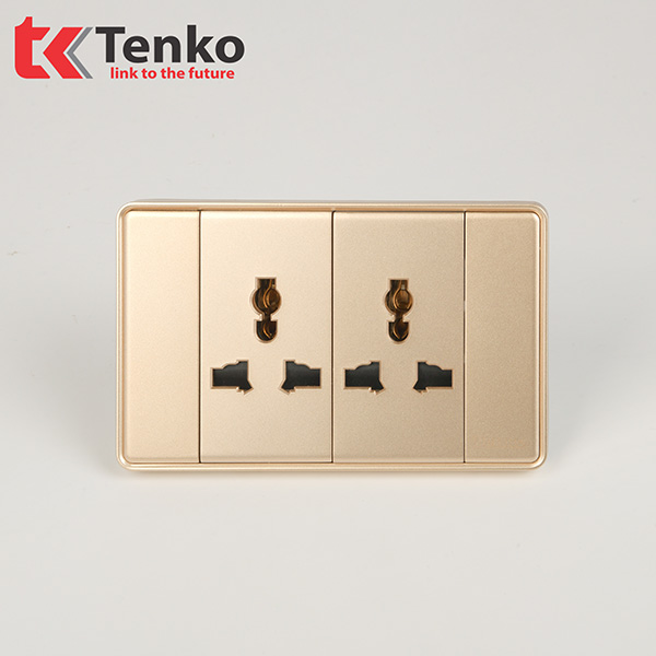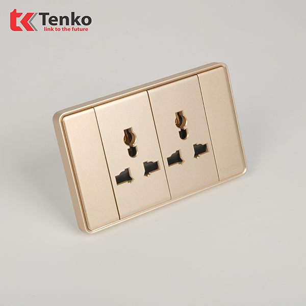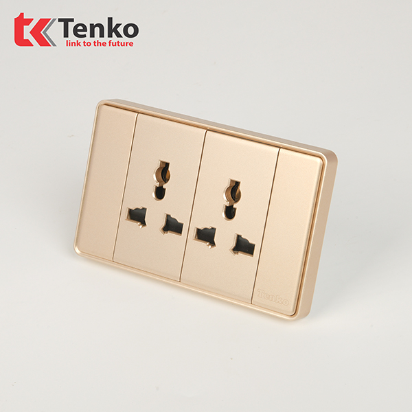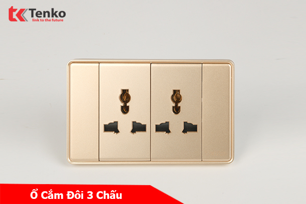 Ổ Điện Đôi 3 Chấu Âm Tường Mặt Tràn Viền Tenko TK-C1-050 Vàng Viền Vàng