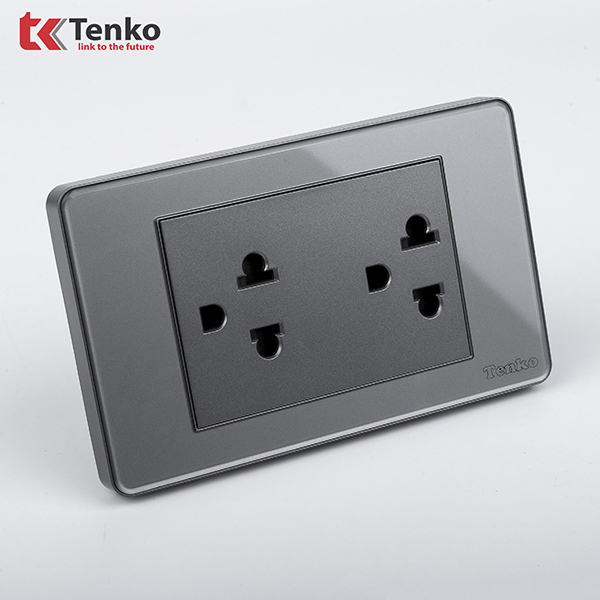 Phân Phối Ổ Điện Đôi 3 Chấu Đa Năng Âm Tường Mặt Màu Xám TENKO TK-C9-044
