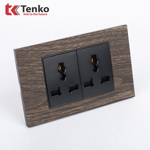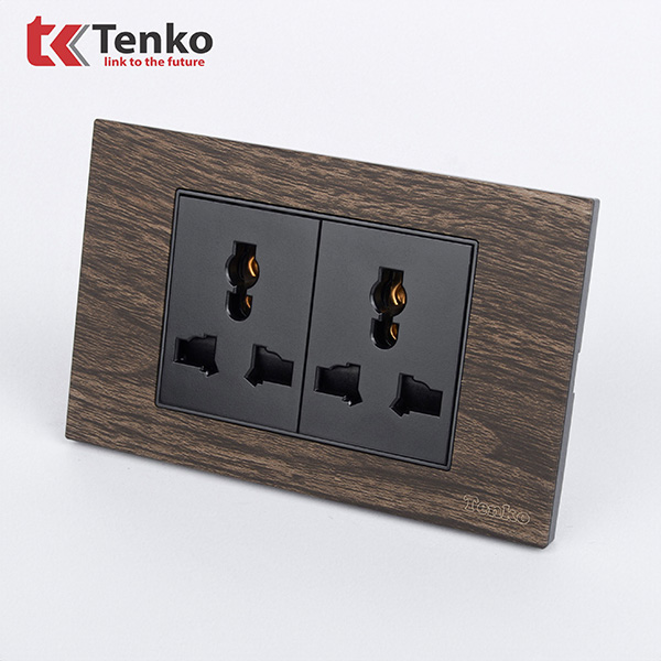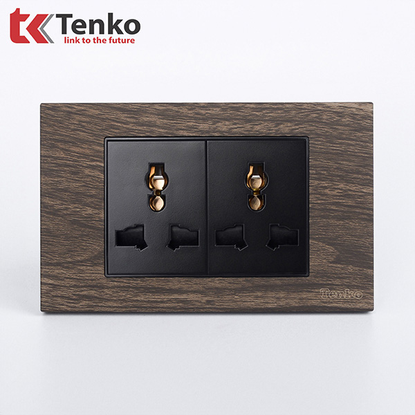 Ổ Điện Đôi 3 Chấu Đa Năng Âm Tường Mặt Vân Gỗ Chính Hãng Tenko TK-C6A-050