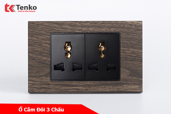 Phân Phối Ổ Điện Đôi 3 Chấu Đa Năng Âm Tường Mặt Vân Gỗ Chính Hãng Tenko TK-C6A-050