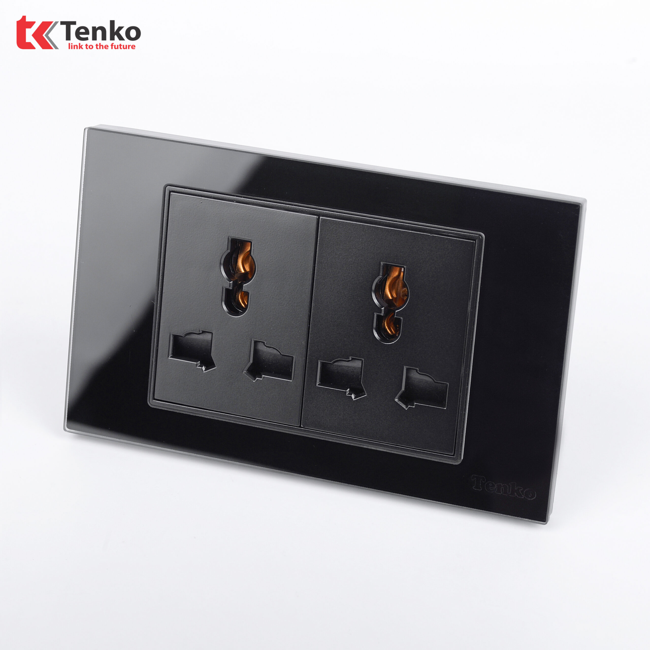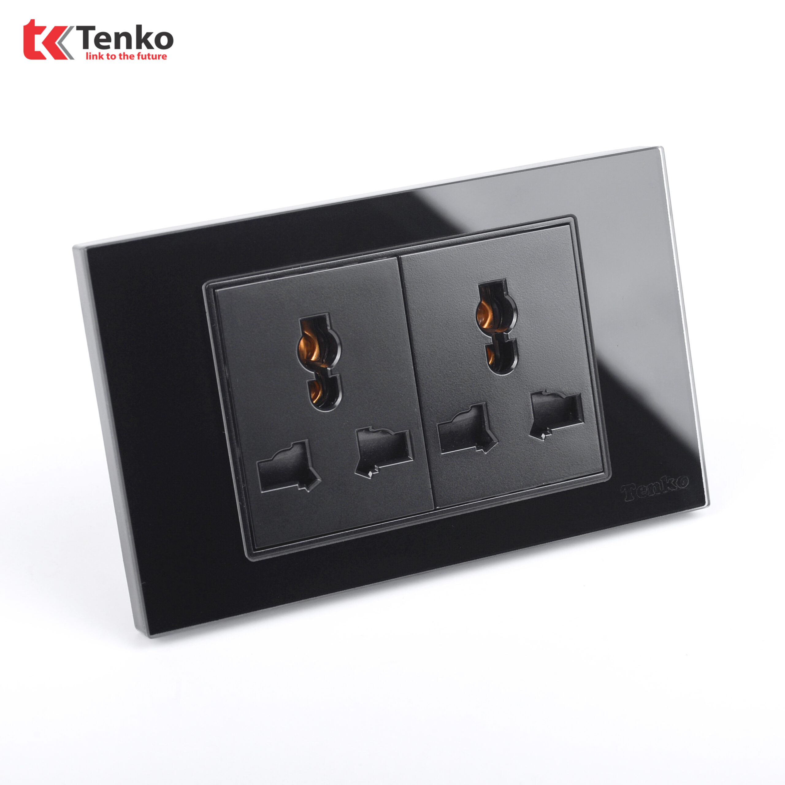 Ổ Cắm Đôi 3 Chấu Âm Tường Mặt Kính Cường Lực TENKO TK-C18-050 Đen